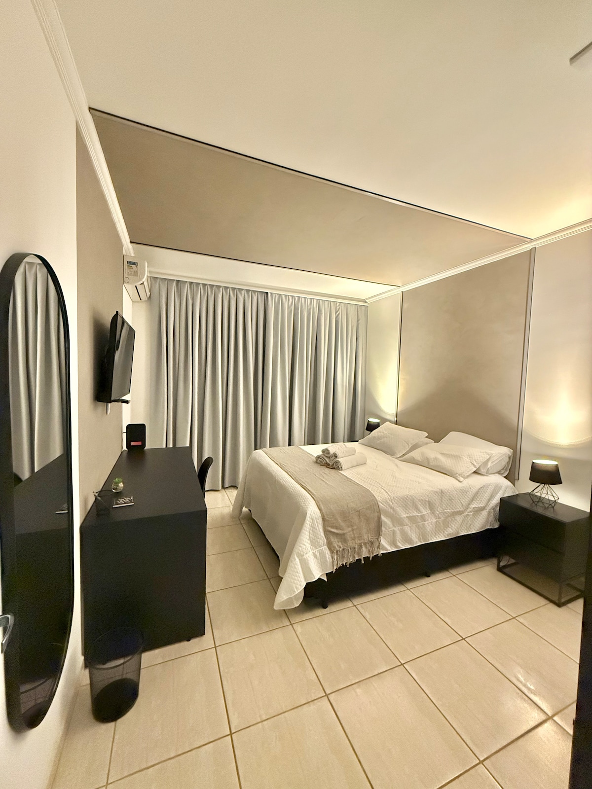 São João da Boa Vista Hava Limanından (SJB) pulsuz transferlə oraya rahatlıqla çatın. Şəhərin mərkəzində, queen ölçülü çarpayı, ev ofisi, mətbəx və praktiki camaşırxanası olan müasir məkan. Parklanma və elektrik avtomobili üçün enerji mənbəyi olan sakit, mütəşəkkil və funksional mühit. Gəlişdən etibarən rahatlıq zəmanəti: isti və soyuq hava kondisioneri, səssiz və səmərəli. Böyüklər və 12 yaşdan yuxarı gənclər üçün unikal. Ev heyvanları qəbul etmirik. Səfəriniz burada başlayır: praktik, əlaqəli və rahat. İndi bron edin