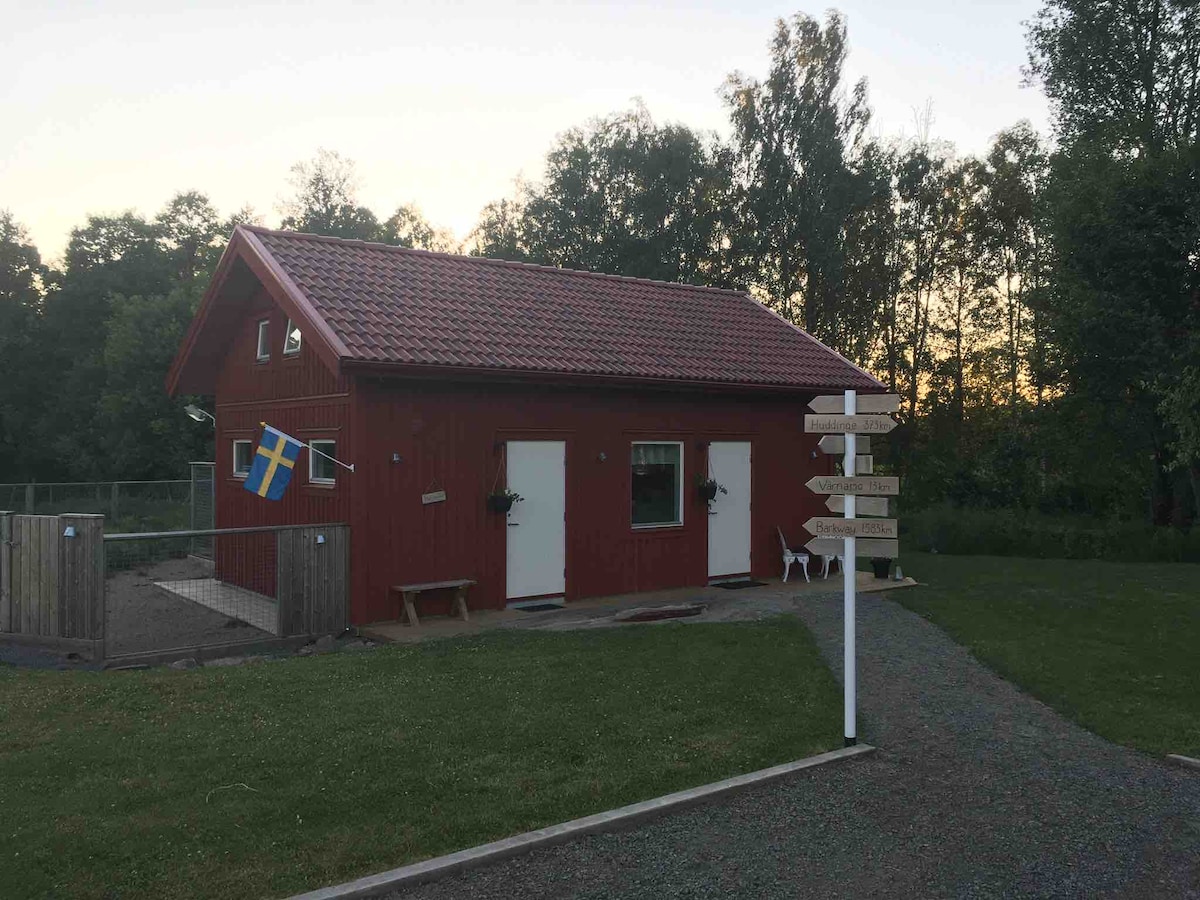 Qonaq evimiz təxminən 50 nəfərlik kiçik bir kənddə yerləşir. Təbiətin qoynunda sakit və dinc bir mühitdir. Meşə və torpaqlarda bir neçə gəzinti yoluna, çimmək və balıq tutmaq üçün gölə yaxınlıq və kəndin qüruru olan, həqiqətən gözəl avtobus muzeyinə giriş imkanınız var. Suyumuz ən yüksək keyfiyyətdədir Qonaq evinə pulsuz parkinq və Wi-Fi daxildir. Təəssüf ki, kənddə mağazamız yoxdur, ona görə də lazım olan ərzaqları özünüzlə gətirin. Biz adambaşına 100 İsveç kronu məbləğində gözəl səhər yeməyi təqdim etməyə şadıq. Bir gün əvvəl bizə bildirin.