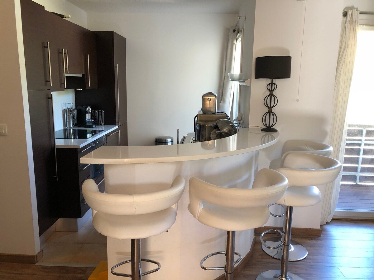 Cənub üzlü balkonu olan yeni təmir edilmiş 30m2 mənzil təklif edirik. Gəlişdən sonra yataqlarınızın, eləcə də dəsmallarınızın hazırlandığını görəcəksiniz. İdeal olaraq xizək , yürüyüş və mağazalara yaxın yerdə yerləşir. Buz meydançası hovuzundan 200 m məsafədə. Mətbəx qabyuyan maşın, soba, mikrodalğalı soba, nespresso qəhvə maşını, raclette sobası ilə təchiz olunub.