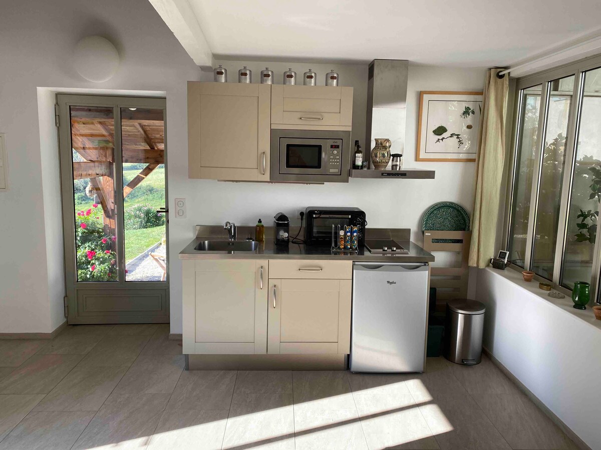 Yataq otağı və böyük qonaq otağı/mətbəx + hamam otağı olan mənzil/müstəqil ev. Qısa və ya uzunmüddətli qonaqlamalar üçün tam təchiz olunub. 160-da böyük çarpayı. Ailə hovuzuna çıxışı olan böyük bağa baxılmır. Mütləq sakitlik. Şəhər mərkəzinə və Cənubi Lion Xəstəxanasına ictimai nəqliyyata yaxındır. Rahatlığı, mənzərəni və mövqeni bəyənəcəksiniz. Cütlüklər, tək səyahətçilər üçün mükəmməl qonaqlama yeri. Parkinqə zəmanət verilir.