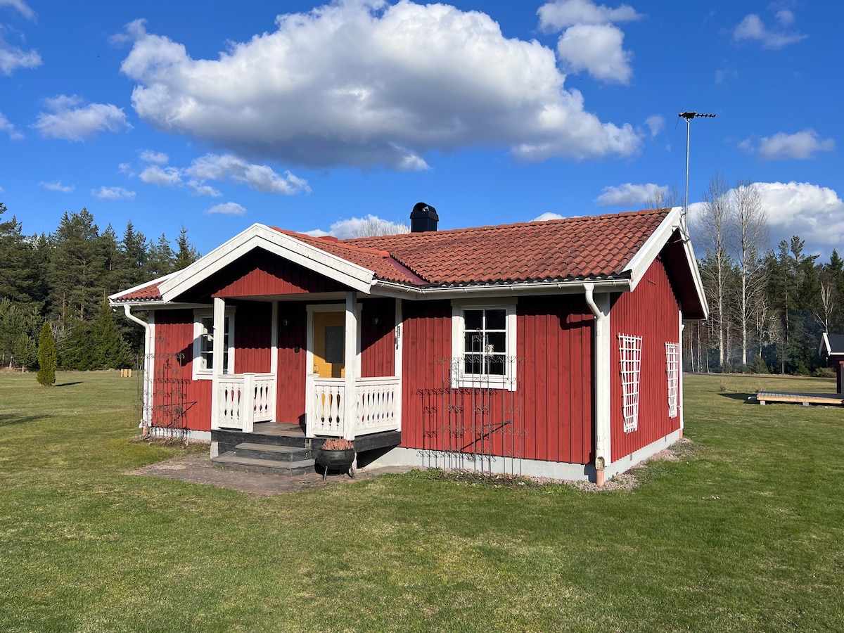 At the homestead called Hamborg, grandfather's old cottage stands in a beautiful, secluded meadow by Lake Örken. It offers a simple but close to nature accommodation close to the lake, swimming and fishing. Here you can experience total peace and silence far from neighbours. A rowing boat is available to borrow and a short walk through the forest there is a nice swimming area with a small sandy beach. There are beautiful surroundings for hiking in the forest or on the gravel roads.