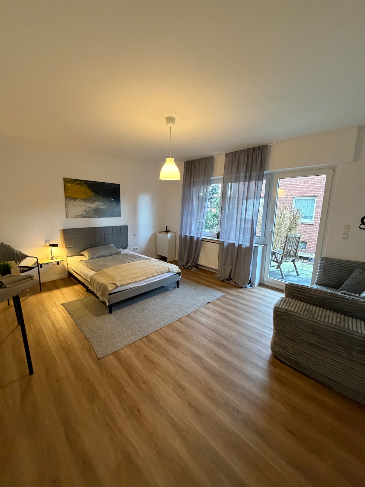 Təmiz, sakit, tam təchiz olunmuş, 8 nəfərlik geniş mənzil (107 kv.m). İstəkdən asılı olaraq uşaq səyahət çarpayısı mövcuddur. Mətbəx, duş və tualetli vanna otağı, TV+Netflix, Wi-Fi və əmlakda parkinq. Mənzil ailə evinin birinci mərtəbəsində yerləşir. Terrası və böyük qazonu olan çöl sahəsi də məmnuniyyətlə istifadə edilə bilər. Qatar stansiyasına piyada 5 dəqiqəyə çatmaq olar, buna görə də Oldenburq kimi ətraf şəhərlərə asanlıqla çata bilərsiniz.