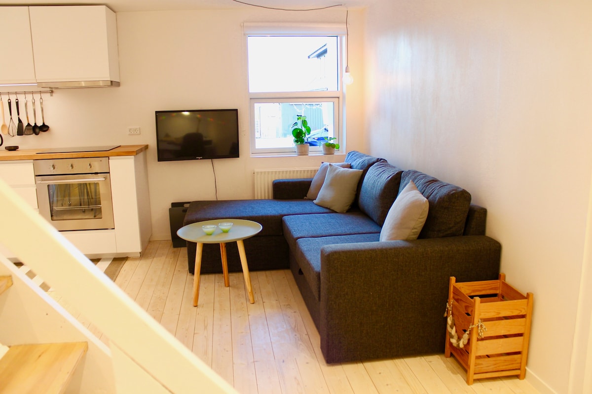 Torshavnın mərkəzində sakit məhəllədə əla qonaqlama üçün ehtiyacınız olan hər şeylə təmin edilmiş kiçik, işıqlı və rahat mənzil. Mərkəzdə restoranlar, kafelər, alış-veriş mərkəzləri və mədəni təcrübələrdən piyada məsafədə yerləşir. Mənzildə böyük ayrıca terras, bir yataq otağı, qonaq otağı, yaxşı təchiz olunmuş mətbəx, qızdırılmış döşəməsi olan böyük vanna otağı, duş və paltaryuyan maşın var. Ön qapının düz çıxışında 8 saata qədər pulsuz park edə biləcəyiniz ictimai parkinq var.
