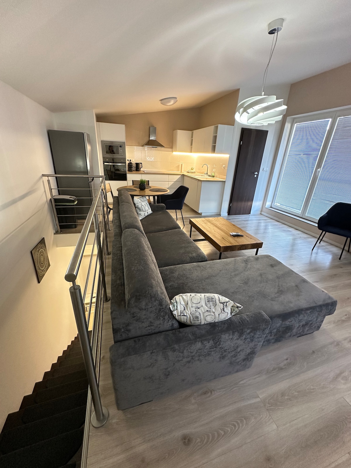 45m2 sahəsi olan Šamorín mərkəzində sakit bir yerdə rahat təchiz edilmiş mənzil. Kraliça çarpayısı olan 1 yataq otağı var. Tam təchiz olunmuş mətbəx, vanna otağı, duş, paltaryuyan maşın və tualet. Mətbəxə bağlı qonaq otağı, 2 nəfərlik yemək masası, rahat divan və balkon. Hamısı sadəcə X-bionikdən atılan daş. Yaşayış binasının qarşısında pulsuz parkinq Mənzil binasına daxil olmaq kilidli və təhlükəsizdir. Gəlin və burada dincəlin, peşman olmayacaqsınız.
