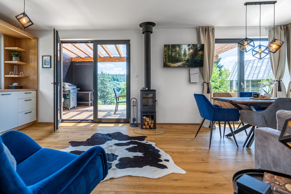 Zövqlə təmir edilmiş tarixi kabinəyə qaçın. Odunla işləyən saunada isinin, sonra isə təbii gölməçədə sərinləyin. Ətrafdakı şəlalə, meşə və təbiətin səsindən zövq alın. Pəncərədə çatlayan yanğınla dincəlin. Lüks komfortlara Bowers & Wilkins səs sistemi, köhnə taxta qapılardan tam təchiz olunmuş mətbəx və qızdırılmış döşəmələri olan hamam otağı və yağış duşu daxildir. Çəkilən Dell monitoru ilə romantik qonaqlama və ya uzaqdan iş üçün mükəmməldir. Praqadan cəmi 30 dəqiqə.