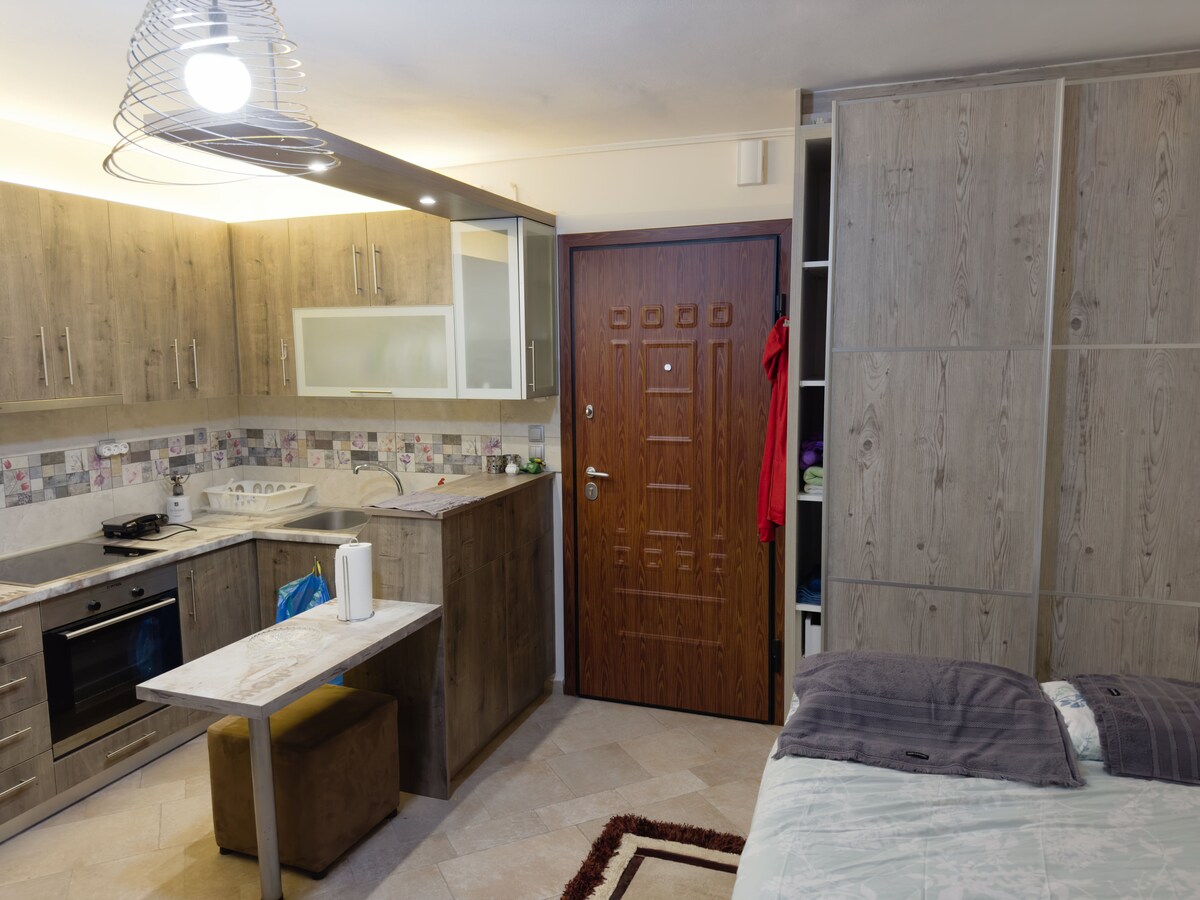 Ayrıca balkonu olan, tam təchiz olunmuş bir yataq otaqlı studiyada qonaqlamadan zövq alın. Mənzil Aqrinionun mərkəzində (əsas meydandan 1 dəqiqəlik məsafədə) mağazalara, restoranlara və əyləncələrə çox yaxın ərazidə yerləşir. 1' piyada məsafədə çörək və supermarket. Həmçinin 2 dəqiqəlik məsafədə Bələdiyyə parkinqi Aqrinio yerləşir. Şəhəri və onun hüdudlarını araşdırmaq istəyən qonaqlar üçün ideal bir yer.