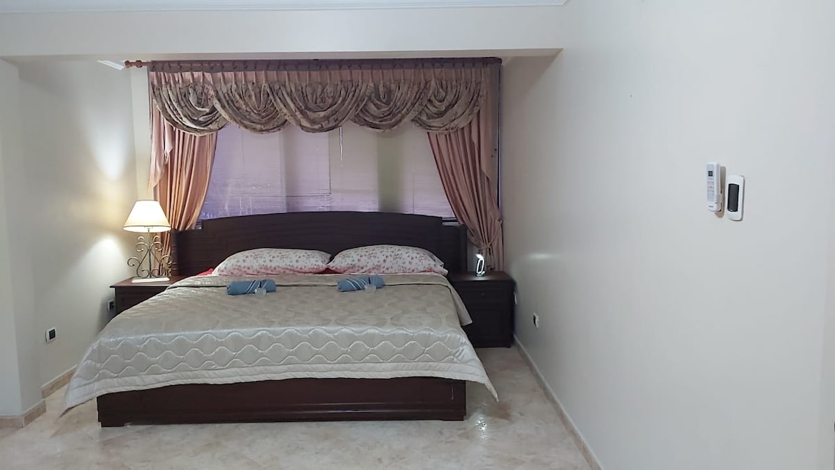 * 110m2 süita yenidən qurulub. *Bütün əmlak boyunca yüksək sürətli Wi-Fi təmizləyin * 12,600 litrlik su çəni. * Premium əşyalar, müasir mətbəx, geniş otaqlar və hamam otaqları, qonaq otağında və bütün yataq otaqlarında super rahat qonaq otağı, televizor və kondisioner. * Elektrik qapısı olan əmlakın içərisində 1 şərikli parkinq yeri. **Bu əmlak evin ikinci mərtəbəsində daxili pilləkənlərlə daxil olaraq yerləşir.