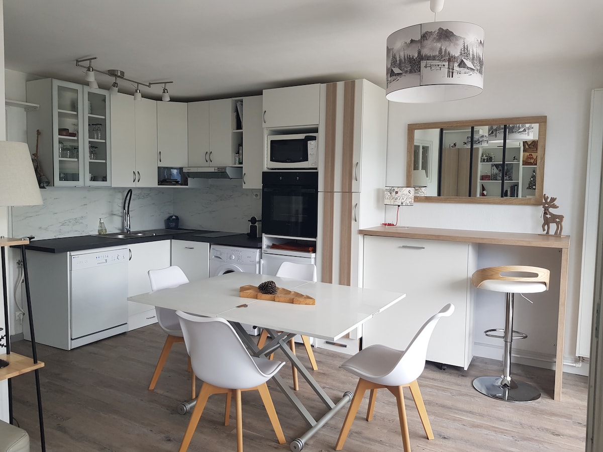 Superbe appartement sur commune des deux Alpes entièrement refait à neuf en 2021 et modernisé en 2025. En dernier étage d'une petite résidence calme proche du centre historique des 2 Alpes. Vous serez éblouis par la vue à couper le souffle et le panorama à 180 degrés sur la station d'un côté et la Muzelle de l'autre. Appartement entièrement et fraîchement rénové de façon moderne et design avec des matériaux de qualité. Nous aurons plaisir à vous faire partager notre havre de paix !