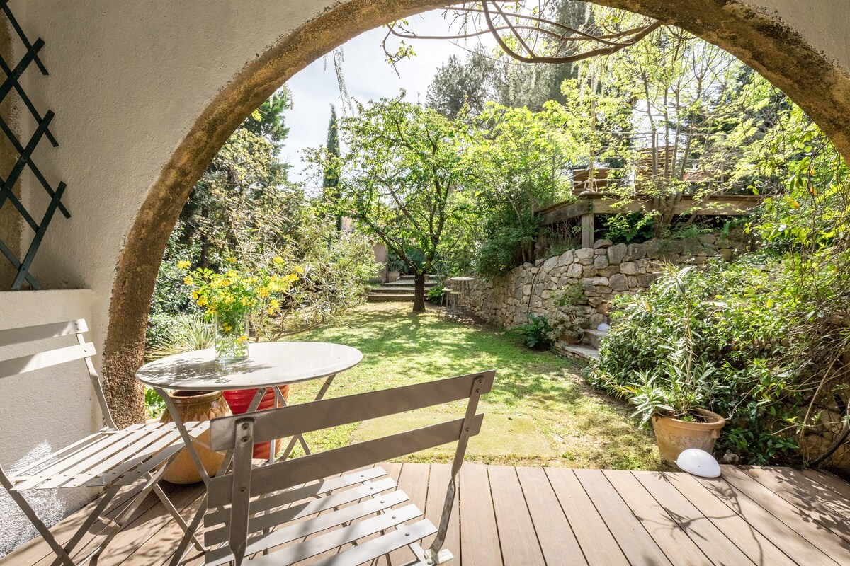 Appartement neuf en rez de jardin d'une villa, près d'un village typique, situé à 15mn d'Aix en Provence, 18 mn de la gare Tgv et de l'aéroport de Marseille. Ouvert sur une belle terrasse couverte et un jardin méditerranéen. Bassin de 3x3m avec assises intégrées. Environnement calme et verdoyant, sans vis à vis. Au cœur du massif de l'Arbois, idéal pour découvrir la Provence, randonner et partir en VTT. A 30mn de la Ste Victoire, du Luberon, de Marseille, de la côte Bleue. A 40mn de Cassis...
