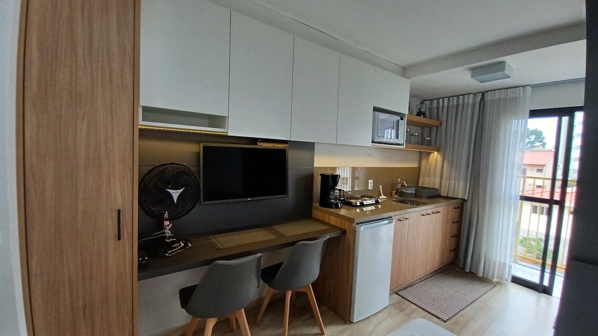 O Estúdio oferece: Cozinha equipada com utensílios: fogão, cafeteira, geladeira, micro-ondas, sanduicheira, panelas, talheres e taças. Também disponibilizamos : Roupas de cama e banho. Papel higiênico : Kit de boas-vindas (shampoo 2 em 1) Colchão de solteiro disponível mediante solicitação no momento da reserva para acomodar a 3º pessoa. Ambiente totalmente planejado para seu conforto e praticidade Prédio oferece: Academia, Piscina aberta (Nao aquecida), Coworking. Lavanderia(pago a parte)