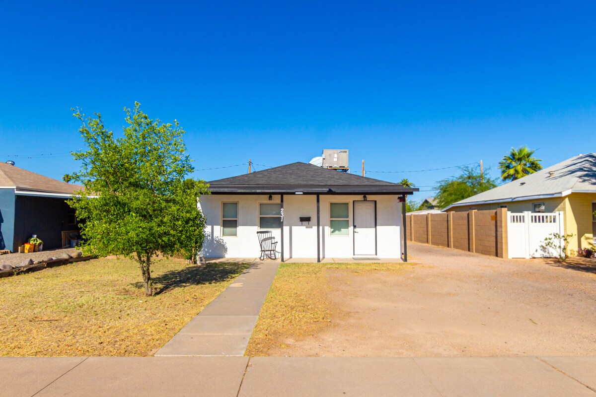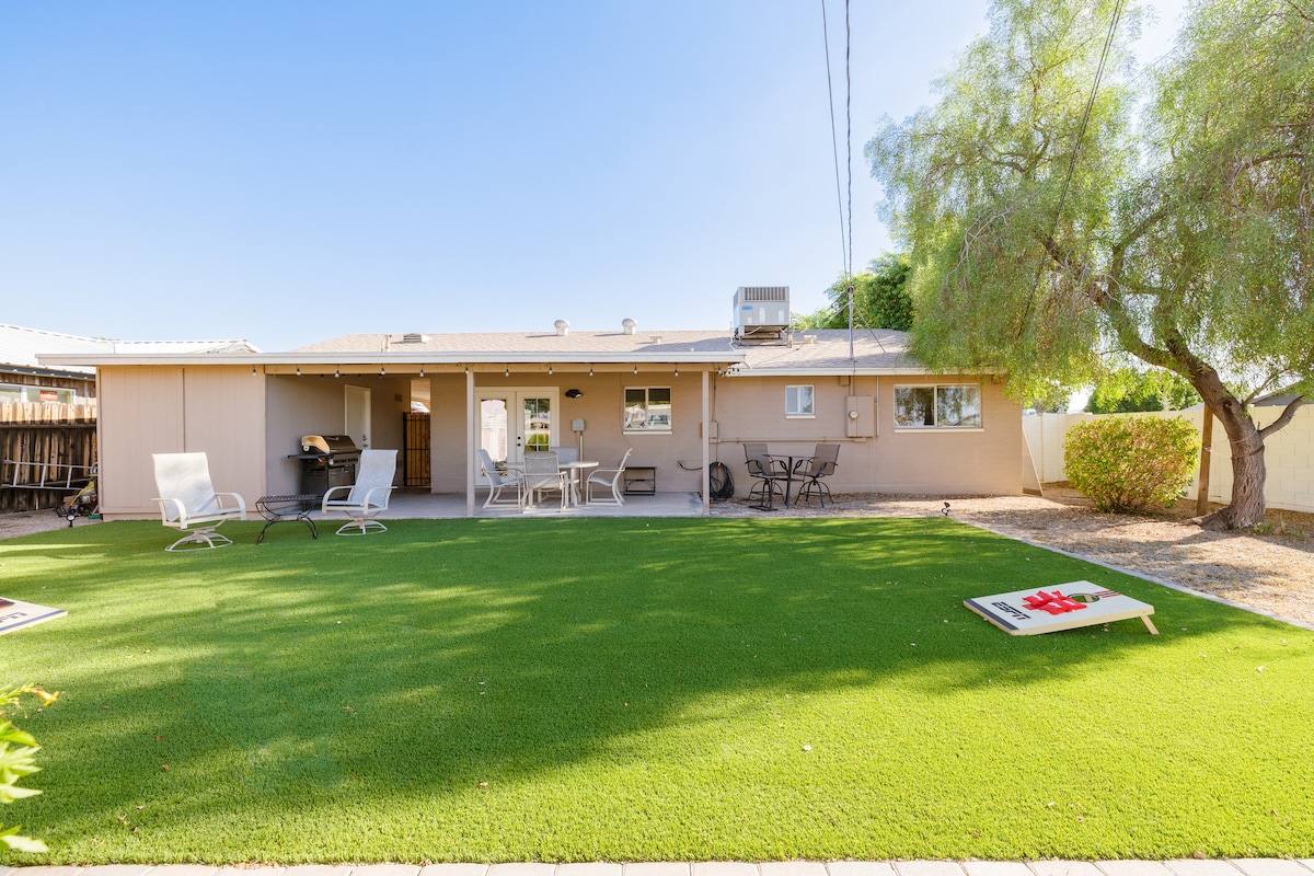 Mill Ave və ADU-dan cəmi 5 dəqiqəlik məsafədə yeni cakuzisi olan bu ev heyvanı yönümlü evdən zövq alın! 25 dəq. Superbowl Stadionuna və PHX Open-ə 10 dəq. Mərkəzlər Yay Təliminə 10 dəq, Mələklər Yay Təliminə 8 dəq, PHX Hava Limanına 7 dəq, Old Town Scottsdale-a 15 dəq! Kral çarpayıları, yeni cakuzi, Ağıllı TELEVİZORLAR, elektrikli buxarı, elektrikli uzanan divanlar, qəlyanaltılar, qəhvə, tam təchiz olunmuş mətbəx, oyunlar, manqal, od çuxuru, qarğıdalı dəliyi, yüksək sürətli Wi-Fi və digərlərindən zövq alın!