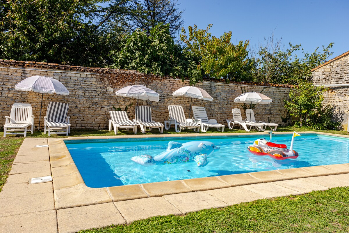 Saintonge şəhərinin mərkəzində yerləşən bu keçmiş ferma səkkiz nəsillik ailədə orijinallığını və cazibədarlığını qoruyub saxlayıb. Yeni bərpa edilmiş nənəmin keçmiş sabit yerində qalacaqsınız. Təbiət və əmin-amanlıq sevənlər, fermamızda pişiklər, toyuqlar və dovşanlarla birlikdə yaşayacaqsınız. Oyunlar, oyuncaqlar, kitablar mövcuddur. Bağdan əlavə, skamyalar və qamaklı kiçik bir meşə. Turist broşürləri. Təmizlik haqqı yoxdur, lakin yaşayış yerini təmiz saxlayın. Təşəkkür edirik