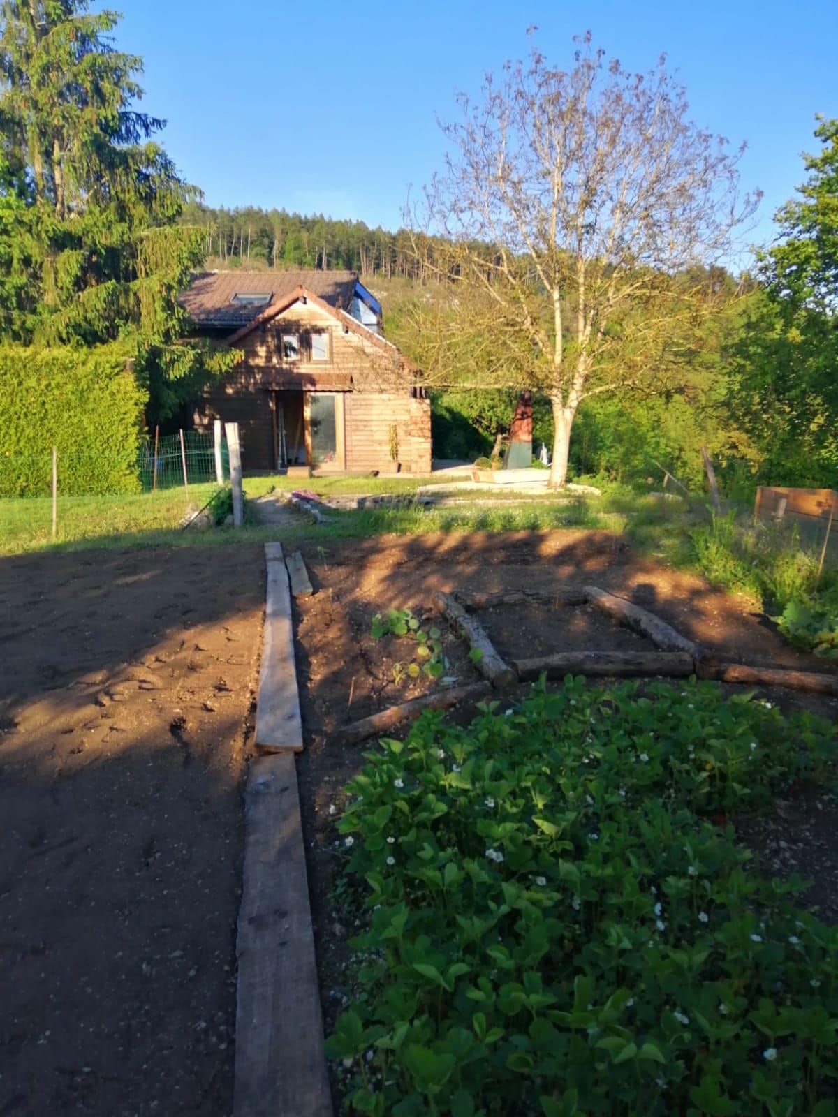 Birinci mərtəbədə 50m2-lik 2 nəfər üçün nəzərdə tutulub: Baxmayan yaşayış yeri evin şimalında yerləşir. Giriş kiçik pilləkənlər vasitəsilədir. Barbekü, masa və çətiri olan heyvanlar üçün evin cənubunda xüsusi hasarlanmış bağ mövcuddur. Yelləncək üçün böyük bağa giriş. Kottec Yura Gölləri bölgəsinin mərkəzində, Ain çayının Vouqlans gölünə axdığı La Saisse limanından 200 m məsafədə yerləşir. 1900-cü illərin köhnə dəmir barmaqlıqları evi.