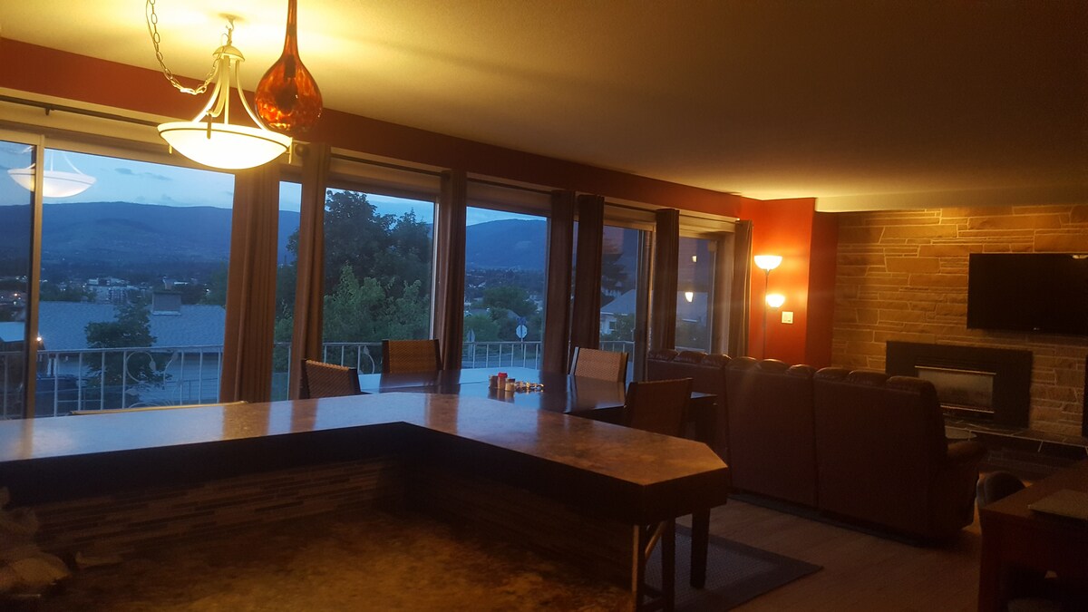 Spacious, Clean, excellent reviews, No cleaning fee! A HUGE full walkout suite with a million dollar view of two lakes, the city and the valley. We live on the upper level. You enjoy the walk-out level to a beautiful yard and THE VIEW. This is the ideal stop between Calgary and Vancouver. Close to wineries, golf courses, bike trails, beaches and more. 15 minutes to world class downhill and cross country ski resort. Quiet and very CLEAN!