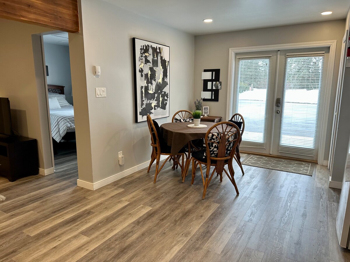 This cozy little in-law suite is on a quiet street just minutes from downtown, trails, beaches, and all other amenities. The kitchenette is well appointed with various supplies and essentials. On the other side of the room is a comfortable queen bed with fresh linens and plenty of pillows. Also included inside the suite are a well stocked 3-piece bathroom, dining set, smart TV, closet with bench, and a robe. The hot tub is wonderful for unwinding after a day filled with adventures!