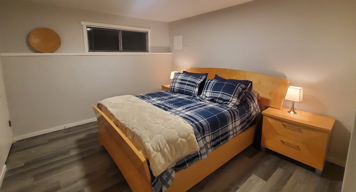 Tam təchiz olunmuş böyük mətbəxi olan müasir səviyyəli gün işığı olan zirzəmi süitası. Hər zaman rahat olduğunuza əmin olmaq üçün yay üçün A/C, elektrikli buxarı ilə qış üçün soba və hər yataq otağında əlavə qızdırıcılar. Hüceyrə jalüzləri olan yaxşı işıqlandırılmış yer. Rahatlıq üçün hər bir lampada USB portu. Kabel girişi və ya yayım xidmətləri olan sürətli 100 mb/s internet və ağıllı tv. Mətbəxdə tam ölçülü cihazlar, su filtri sistemi və soyuducuda buz aparatı var.
