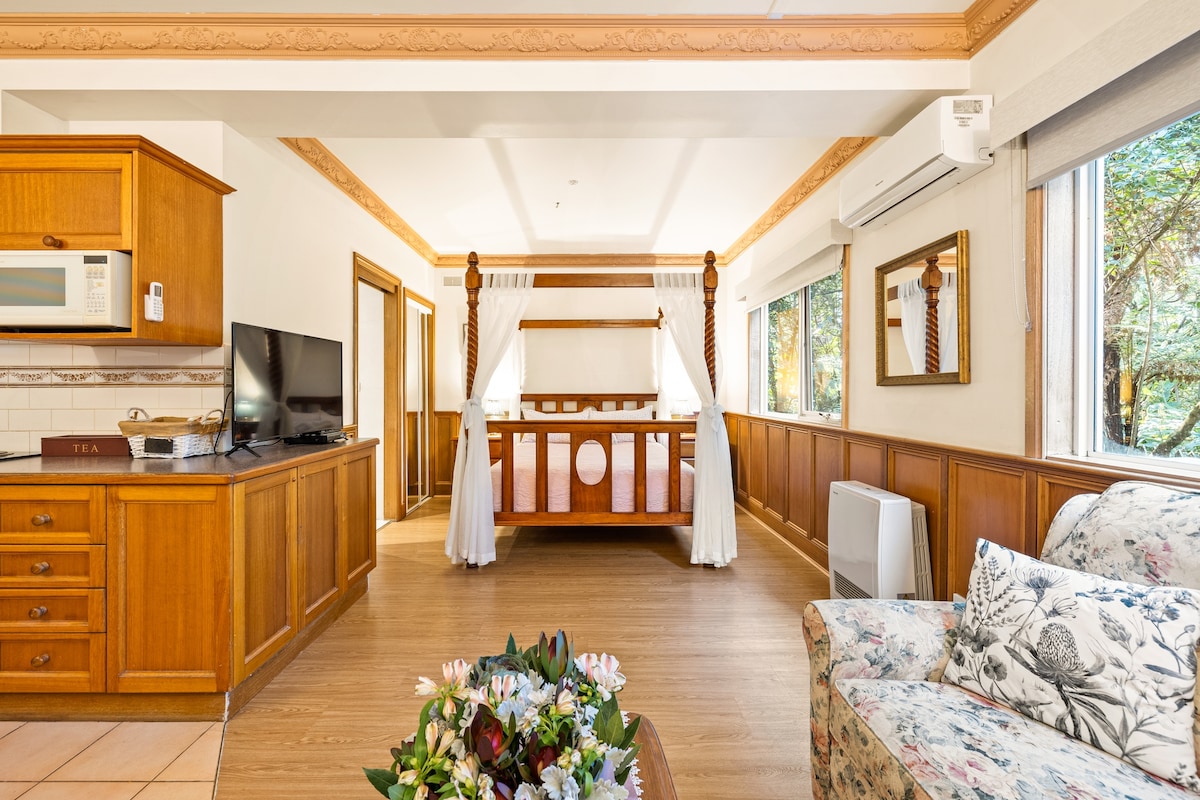 Melburn şəhər səmasının heyrətamiz mənzərələri olan mükəmməl çardaq üslubunda süita, ipək örtülü dörd plakat çarpayısı, qonaq otağında ikimərtəbəli spa (bəli, spa mənzərələrini görə bilərsiniz!), kondisioner, qazlı yanğın və binokl və teleskopla xüsusi balkon. Həftəlik endirim və ya daha uzunmüddətli qonaqlama(7+ gün) səhər yeməyi daxil deyil.