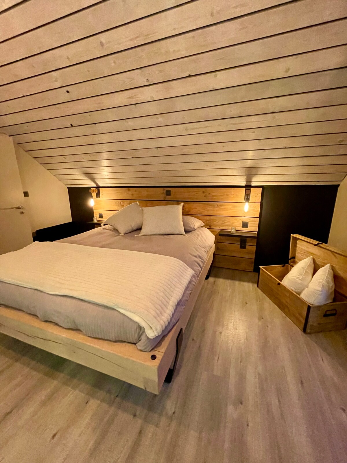 Sevgi yuvası kənddə yaşamağımızdır. Böyük daş buxarı olan kiçik müasir taxta ev, gözəl ikinəfərlik otaq və qonaq otağından pərdə ilə ayrılan kiçik bitişik otaq təklif edir. Odun sobası və açıq odla tam qızdırılan bu məkan isti və füsunkar atmosfer təklif edir. Qismən örtülü (Belçika məcburları) olan cənub üzlü terras hamını təcəssüm etdirir.