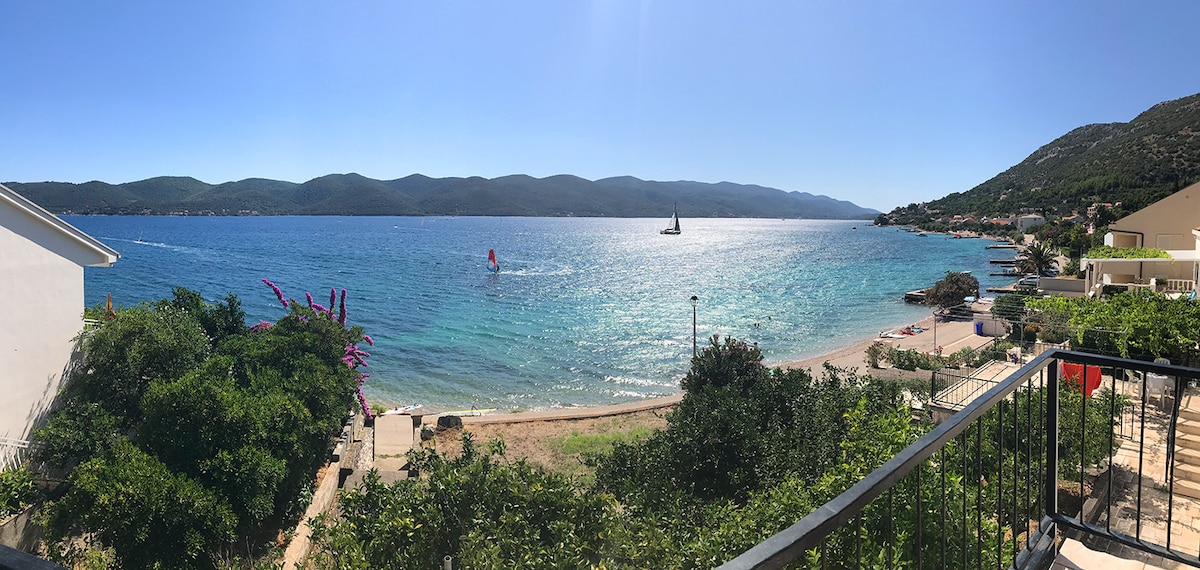 Korcula İçəri Şəhərdən və çimərlikdən bir neçə dəqiqəlik məsafədə, sakit yerdə yerləşən yeni mənzil. Ayrıca parkinq yeri var. Mənzilin qarşısında dənizə və Pelješac yarımadasına mənzərəsi olan kiçik bağça və terras var. Mənzil ailə evinin birinci mərtəbəsində yerləşir, lakin məxfiliyi təmin edən ayrıca girişi var.