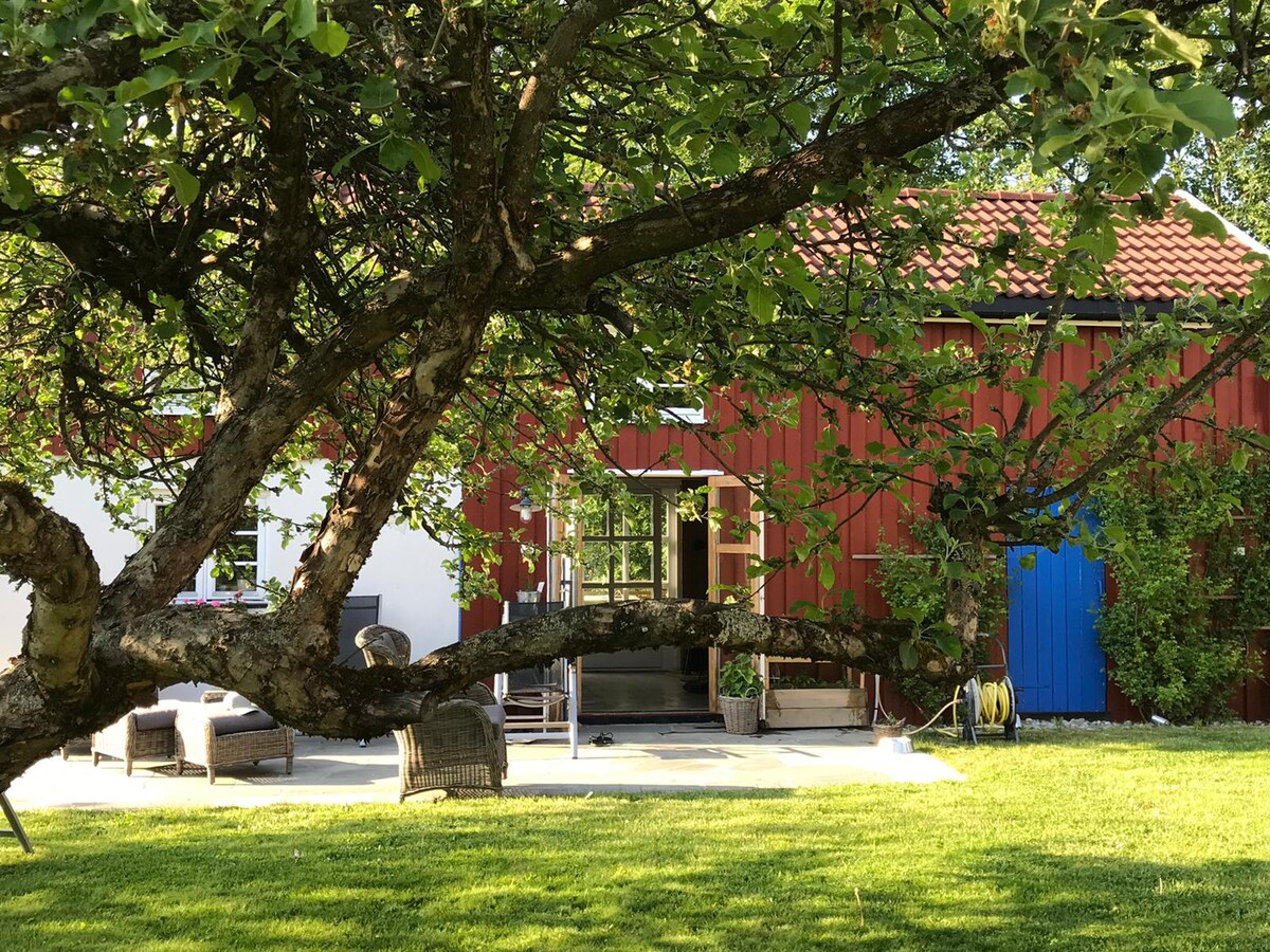 Unique and charming newly refurbished barn with a rustic and natural appeal on the sunny countryside. A nature or romantic getaway close to nature for a couple or a small group. Bedroom with double bed and office space in mezzanine. Possibility to rent a addition bedroom with double bed upon enquiry (additional pay). Nature with many hiking tracks at your doorstep, yet only 25 min drive from Oslo city. Access to a fantastic outdoor sauna to be enjoyed all year. Simple, charming, calm.