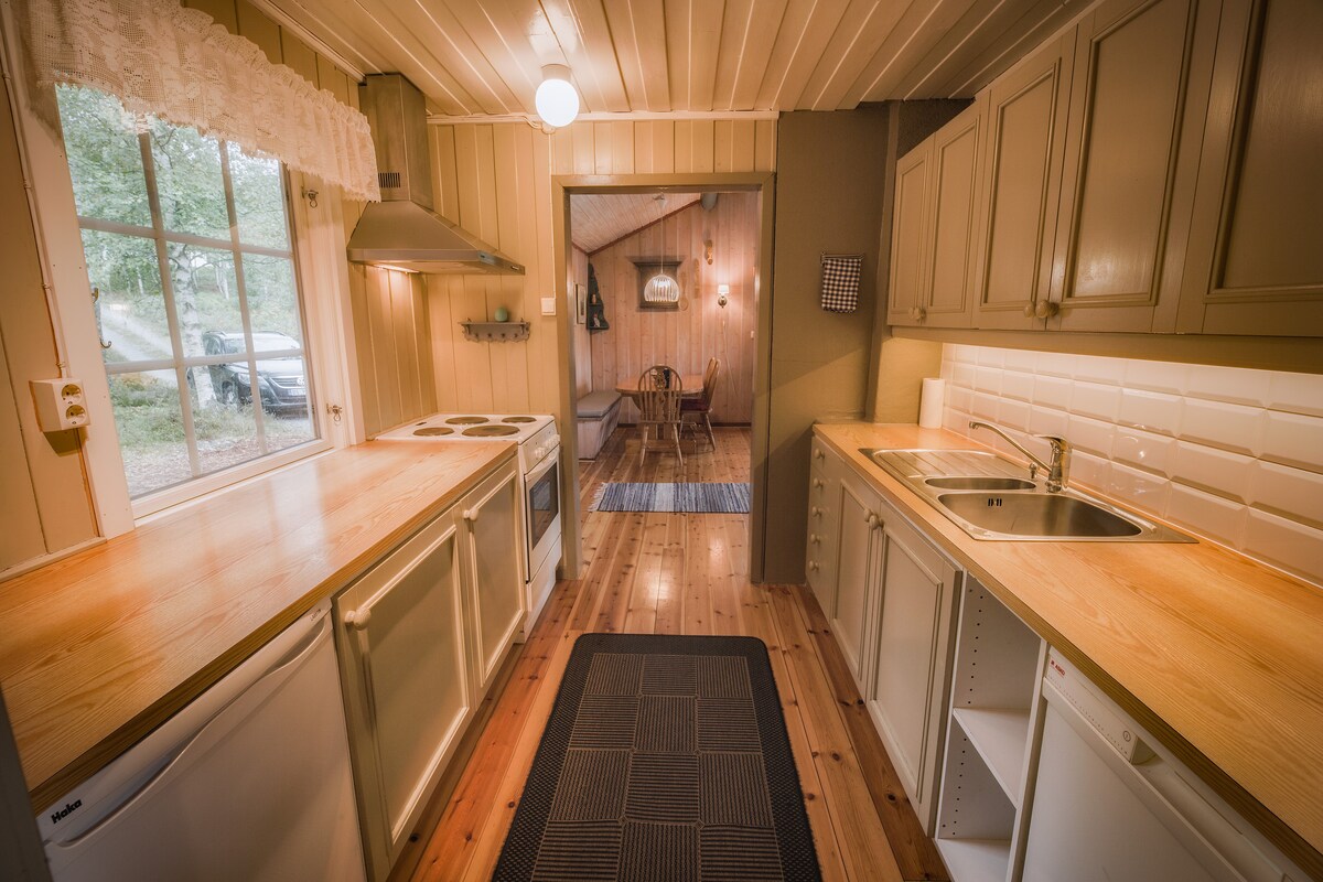 Yaşayış yeri standartı, dəniz mənzərəsi, açıq havada mətbəxi və dənizə yaxınlığı olan yay kotteci Əla dəniz mənzərəli rahat yay kotteci və istirahət üçün bir neçə zonası olan günəşli terras. Barbekü və pizza sobası olan açıq hava mətbəxi yeməkləri təcrübə edir. Üzgüçülük fürsətini ümumi jetty-də, kabinədən cəmi 350 metr məsafədə tapa bilərsiniz. Kabinədən sahil yolu (təxminən 3 km) vasitəsilə asanlıqla çata biləcəyiniz Storesand və Husebystranda kimi bir neçə gözəl çimərliyə qısa yol var. Rahatlıq mağazası da eyni yol ilə piyada məsafəsindədir.