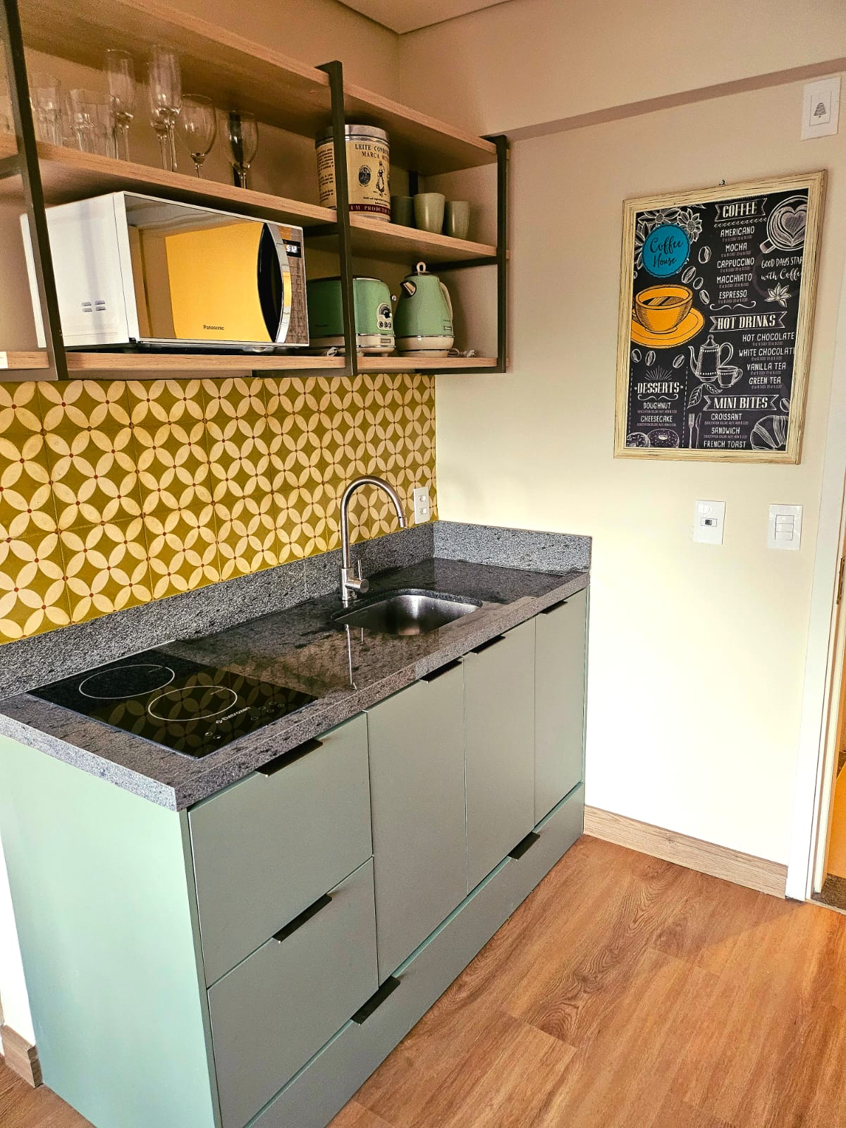 Perdizesin mərkəzində dizayn layihəsi olan butik studiyası. Fərdi dülgərlik, imzalı dəri çarpayı, 500 ədəd oxunaqlı döşəkağı-dəsmal dəsti, sisal xalça, qaralma pərdələri, Kondisioner. Kasa Delas tərəfindən seçilmiş süfrə dəstləri — hamısı satın almaq üçün mövcuddur. Şimal-şərqdən hazırlanmış iki əl işi məkana ruh əlavə edir. Satış üçün şüşələri olan iqlimlə idarə olunan şərab soyuducusu, rahat yemək guşəsi, işıqlı şüşə kabinet və butik otel ab-havası. 7 gecəlik və ya daha uzunmüddətli qonaqlamalar üçün ilk gün səhər yeməyi təklif edirik.