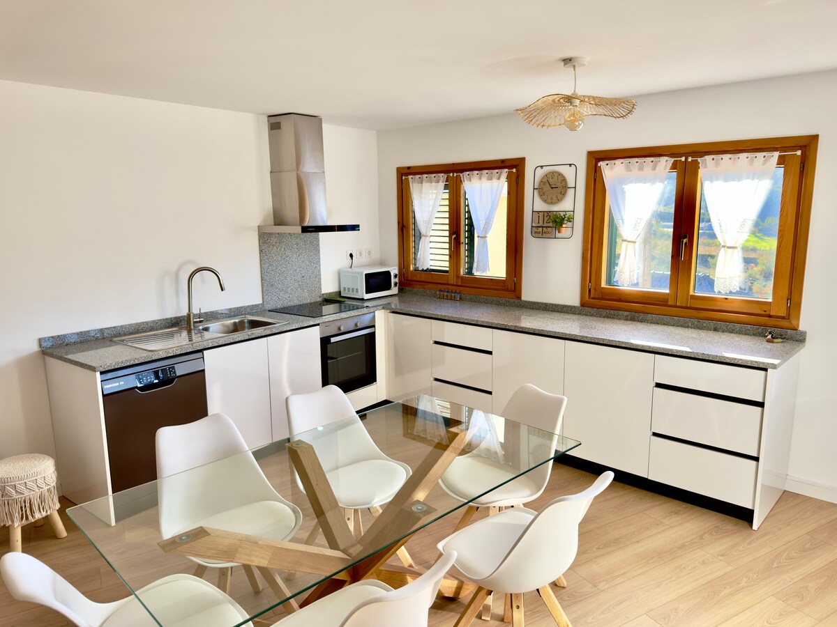 Rahatlıq, sakitlik və təcrid təklif etmək üçün dizayn edilmiş, tamamilə yenilənmiş bu evdə yerləşin. Yaşayış yerində 2 yataq otağı, mətbəx avadanlıqları ilə təchiz olunmuş geniş, işıqlı qonaq otağı, eləcə də il boyu optimal rahatlıq üçün ən son nəsil istilik və kondisioner sistemi var. Rahat və sakit dekorasiya sizi kəşflərlə dolu bir gündən sonra dincəlməyə dəvət edir. Eyvandan dağların və vadinin heyrətamiz mənzərələrindən zövq alın.