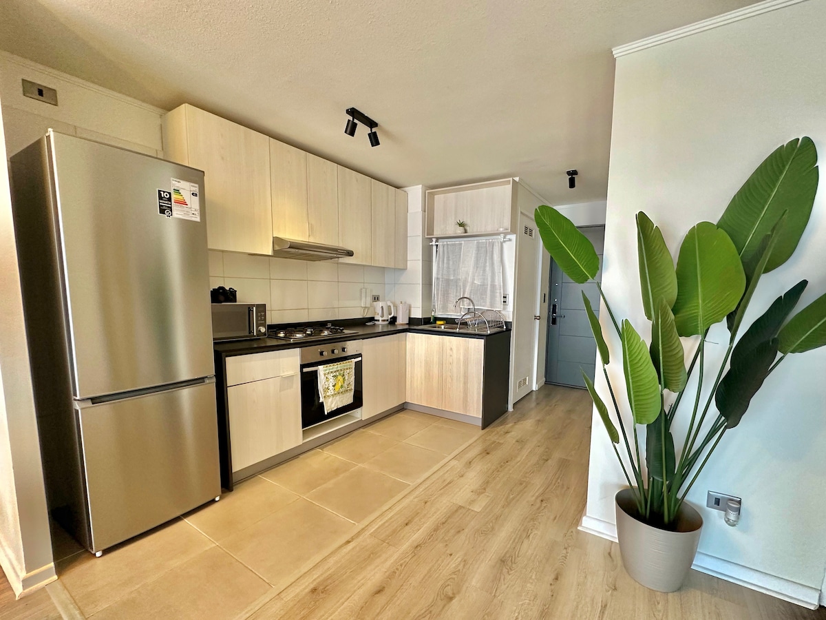 Viña del Mar mərkəzindən 20 dəqiqəlik məsafədə yerləşən bu sakit mənzildə rahat qonaqlamadan zövq alın. WiFi, kabel televiziyası, paltaryuyan maşın , buxar ütüsü və digərləri ilə La Kampana və Olmué Milli Qoruğuna yaxındır. Döşəkağı-dəsmal, dəsmal və tualet ləvazimatları və şəxsi qulluq ləvazimatları daxil edirik. Soba, soyuducu, çaydan, mikrodalğalı soba, toster ilə mətbəx. Binanın qarşısında biznes. Bu rahat məkan regiona səfərinizdən zövq almaq üçün sizə ideal şərait yaradır.