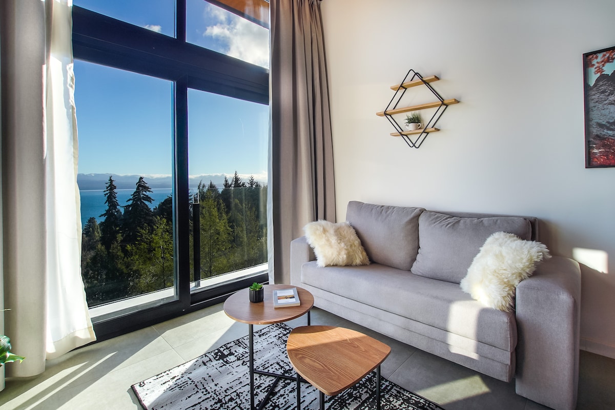 Müasir, təbii işıqla dolu və unudulmaz göl mənzərəsi təklif edir. 🌅 Sakit, gözəl göl mənzərəsi və mükəmməl mənzərə ilə oyanmağı təsəvvür edin. Rahat yataq otağı, qonaq otağında mətbəx və geniş hamam otağı ilə 2 nəfər üçün mükəmməldir. Soyuğa həssassınızsa, döşəmə istiliyi ilə isti qalın Mövqe: Şəhər mərkəzindən kənarda yerləşir, buna görə də şəhər həyatından uzaqda sükunət axtaranlar üçün ideal istirahət yeridir. Avtomobillə gəlmək üçün ən yaxşısı. Uber mövcuddur