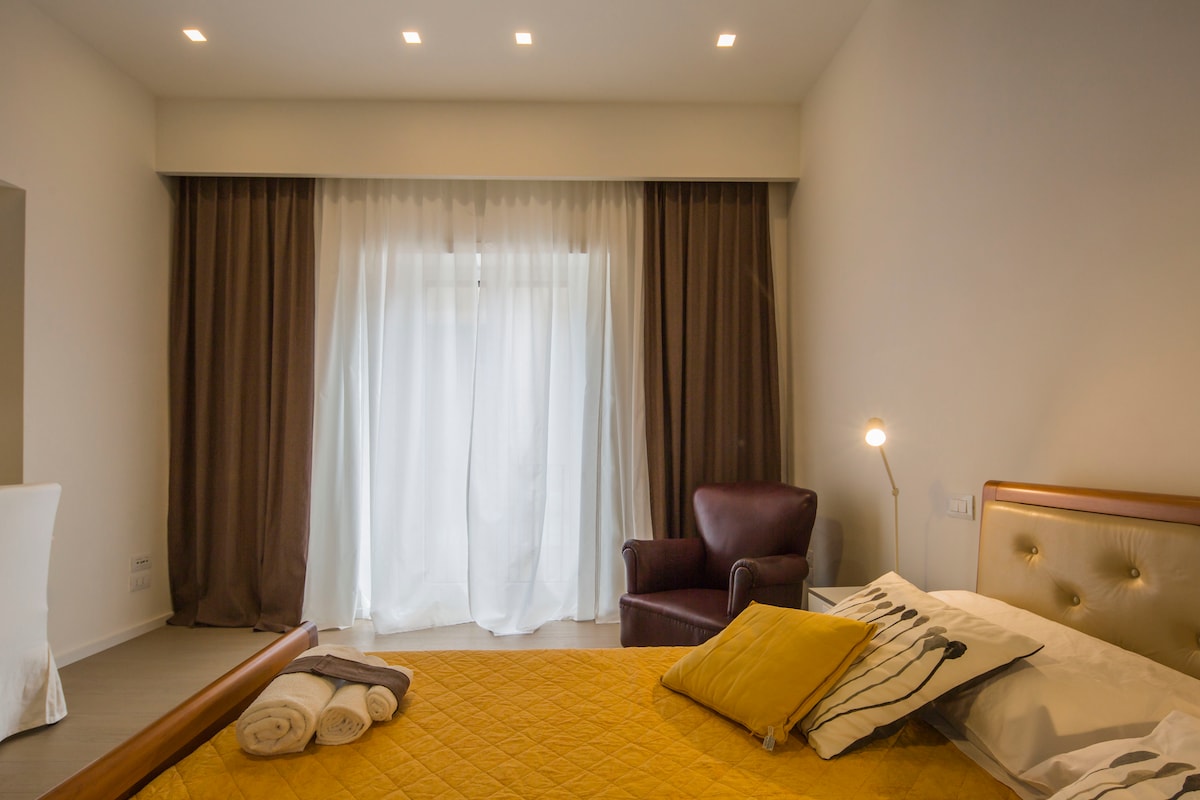 Julius is an open space of historical-artistic importance renovated and restored to protect and enhance the original ambience. The privileged and dominant position, close to the main attractions of the Old Town, allows you to admire the Amalfi Coast and the sea from the wide windows. The space with a double bed is perfect for a couple vacation in the City or for 3 (sofa bed). If connected with Olympia Apt could accomodate 6 people. There is also a depandance where other two guest could stay.