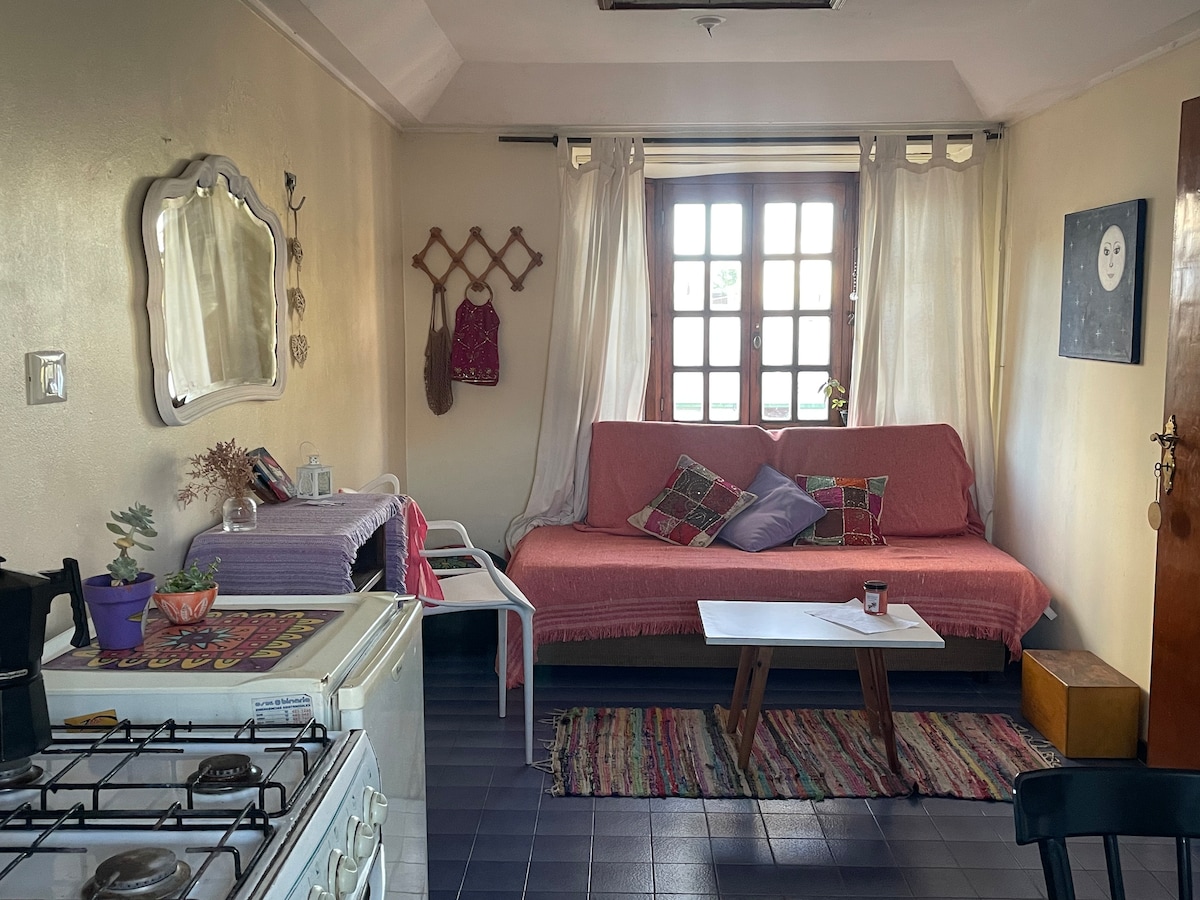 La Platanın ən əlaqəli ərazisində, qarşısında balkonlu parlaq studiya mənzili. San-Martin Xəstəxanasından cəmi 5 dəqiqə və fakültələr, mərkəzi stansiya və Hippodromu birləşdirən universitet qatarından 2 blok. Rekvizitlər, tədbirlər, tələbə ziyarətləri və ya qısamüddətli qonaqlamalar üçün idealdır. İki birnəfərlik çarpayı, təchiz olunmuş mətbəx, yemək və ya iş masası, Wi-Fi. Balkonda ev heyvanları yönümlü və siqaret çəkməyə icazə verilir. Pilləkənlərlə 1-ci mərtəbə. Sadə, rahat və strateji mövqedə yerləşən məkan.