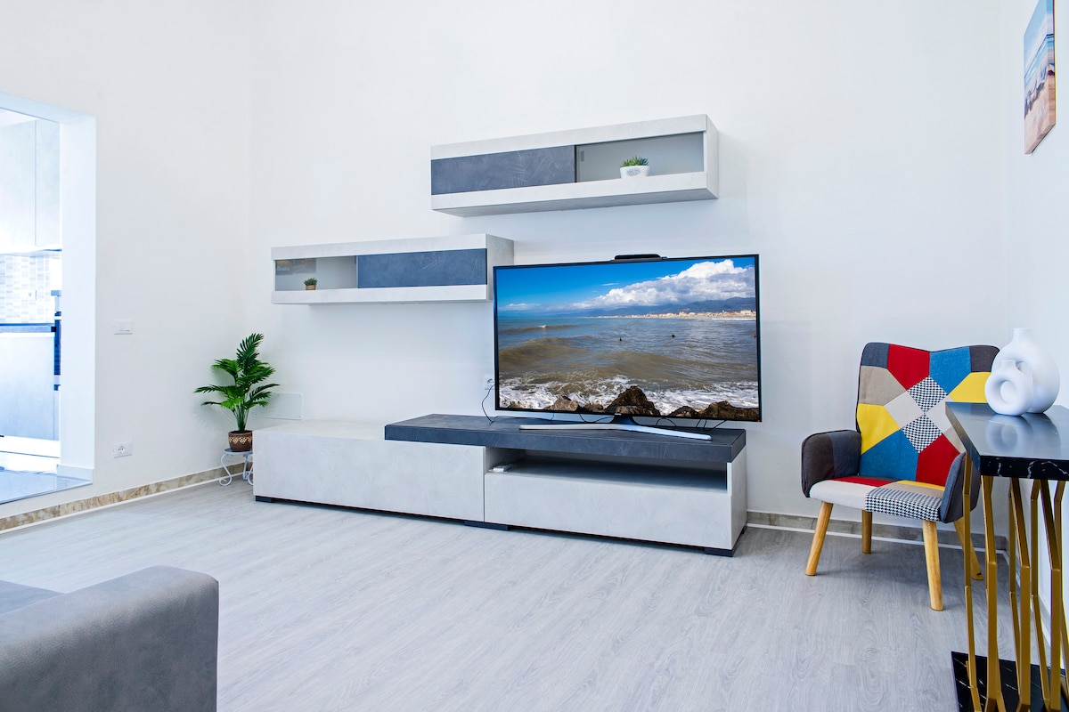 Full Apartment with 2 bedrooms, 1 bathroom: - Living room including full equipped kitchen and dining area - 2 Double Bedrooms available in different combinations of double/single beds - Brand new bathroom with 100x80 masonry shower cubicle - Fully usable balcony for staying, eating and drinking outdoors, including washing machine and laundry. The fee includes towels, linens, soaps and kitchen and bathroom accessories. Exclusive covered parking lot.