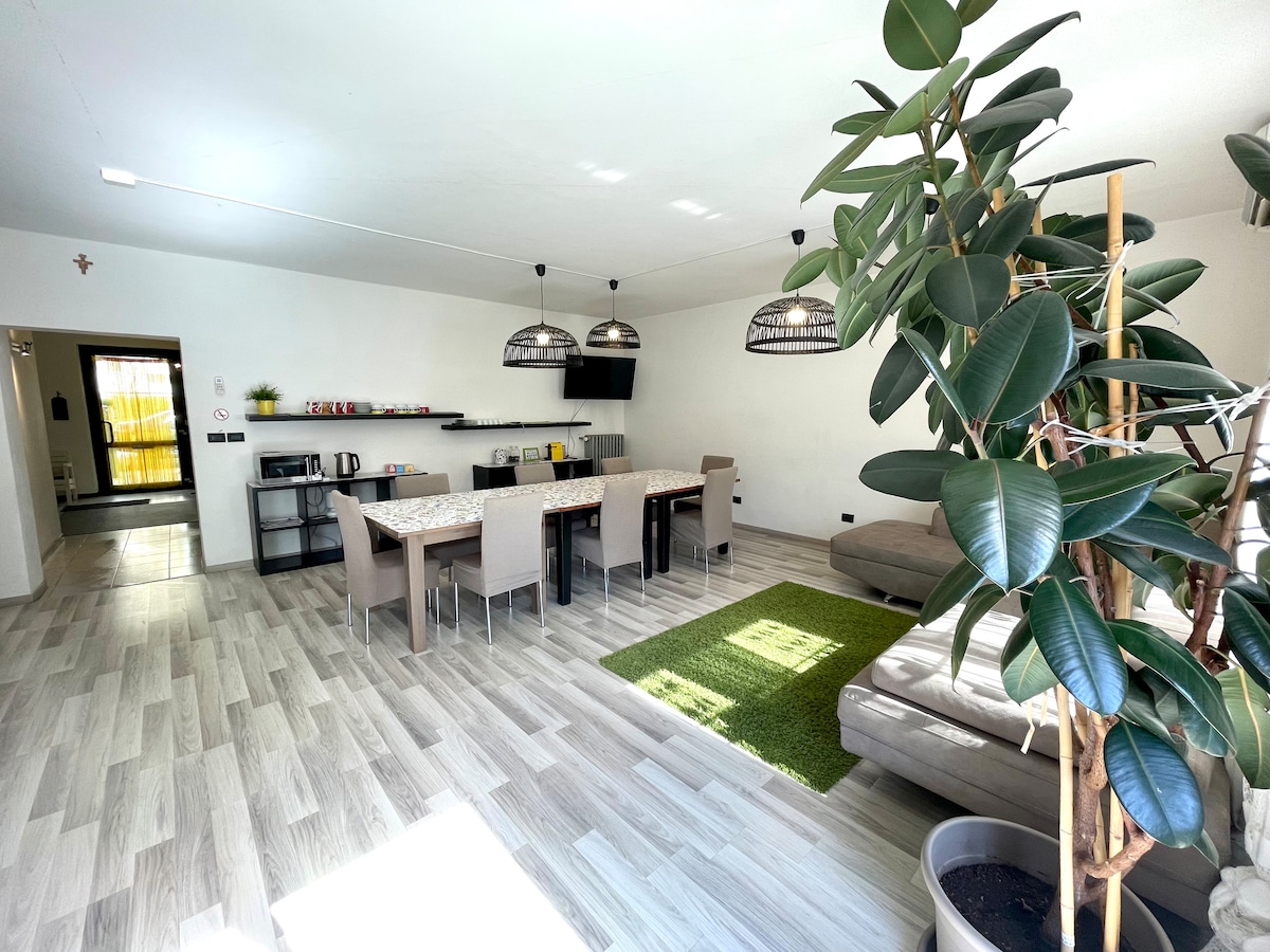 Bu yaxınlarda tikilmiş dəbli və geniş ev: 1 kiçik süita 1 əsas yataq otağı 2 ikinəfərlik yataq otağı, 3 vanna otağı Mətbəx Yemək otağı Qonaq otağı Teras Bağı Hər otaqda A/Catering və WiFi pulsuzdur. Dəsmallar, döşəkağılar və səhər yeməyi üçün lazım olan hər şey mövcuddur. Biz tarixi mərkəzdən bir neçə avtobus dayanacağı və magistral yola çox rahatıq, bunun sayəsində 15 dəqiqə ərzində Yarmarkaya, 20 dəqiqə ərzində Qarda gölü və cəmi 1 saat ərzində Venesiyaya çata bilərsiniz.