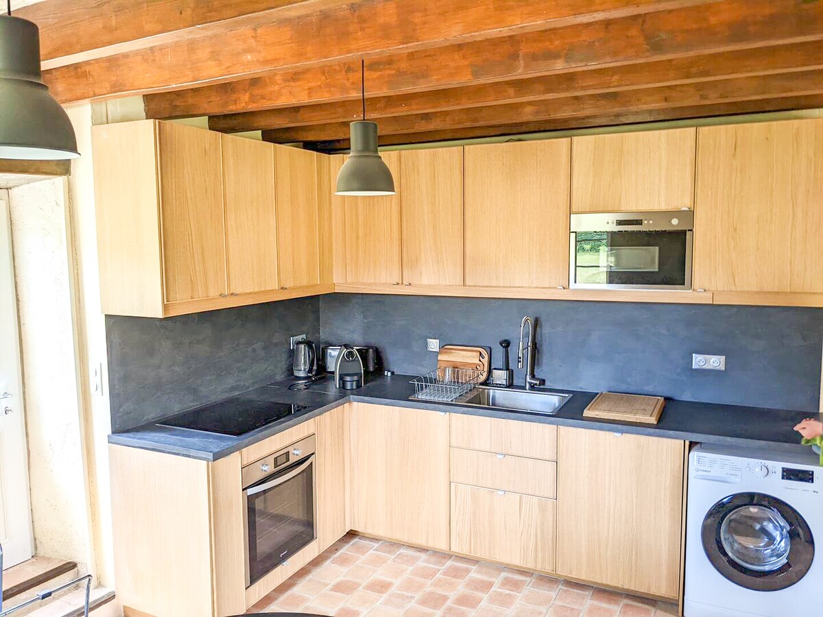 Parisdən cəmi 1h15 məsafədə, 17-ci əsrə aid ailə şâteunun yanında hasarlanmış bağı olan müstəqil ev. 3 yataq otağı, 2 hamam otağı, tam təchiz olunmuş mətbəxi və buxarısı və kitabxanası olan rahat qonaq otağı ilə diqqətlə təmir edilib. Ağacları, göyərtə stulları və barbekü olan böyük ayrıca bağ. Wi-Fi, kitablar, oyunlar. Cazibədarlıqla dolu sakit mühit. Təbiət qoynunda ailəvi qonaqlamalar və ya uzaqdan iş üçün mükəmməldir.