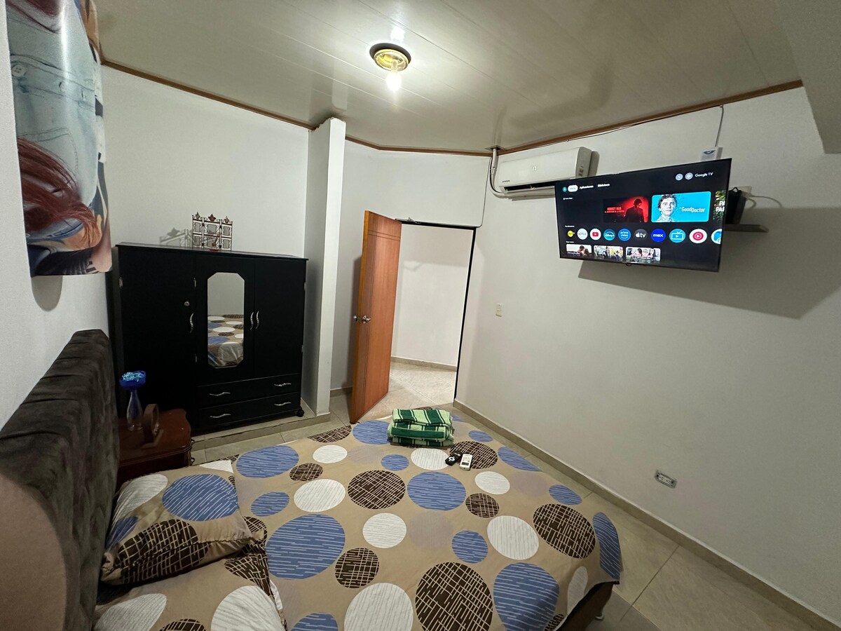 Nəqliyyat, mağaza və restoranlara asanlıqla çatmaq mümkün olan sakit bir məkan olan Doña Luz məhəlləsində xüsusi, rahat və tam təchiz olunmuş studiya mənzildən zövq alın. Vilyavisensioda səyahətçilər, cütlüklər, tələbələr, işçilər və istirahət üçün təhlükəsiz və praktik yer axtaranlar üçün idealdır. ⭐ Stüdiya mənzilin xüsusiyyətləri • Rahat ikinəfərlik çarpayı • Ayrıca hamam otağı • Ağıllı TV • Yüksək sürətli WiFi •. Kondisioner • Mini Soyuducu
