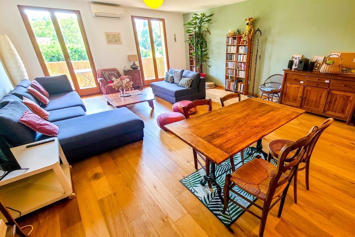 Villeneuve-les-Avignonun mərkəzində yerləşən bu ZƏRİF və MƏRKƏZİ 104 m² mənzilə ✨xoş gəlmisiniz! ✨3 CLIMATED YATAQ OTAĞI, GÖZƏL İŞIQLI qonaq məkanı və tam təchiz olunmuş mətbəxi ilə 6 nəfərə qədər qonağı rahatlıqla qəbul edir. Wi-Fi, TV və bütün MÜASİR komfortlardan ✨zövq alın. DUŞ və dəsmal quruducusu olan ✨2 hamam otağı Avinyona yaxın, ürək rahatlığı ilə qonaqlama üçün bu IDEAL parametri tamamlayır.