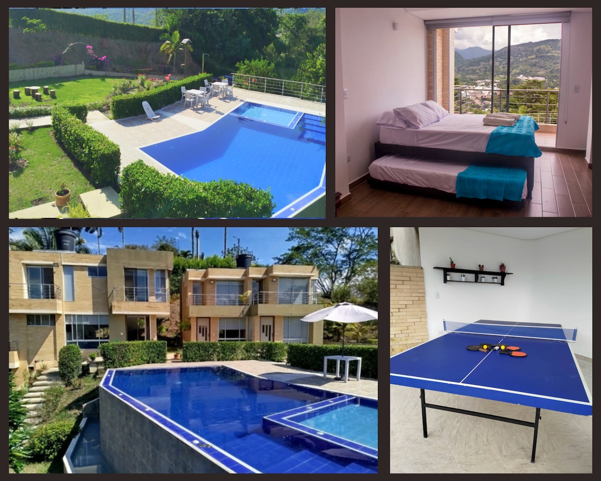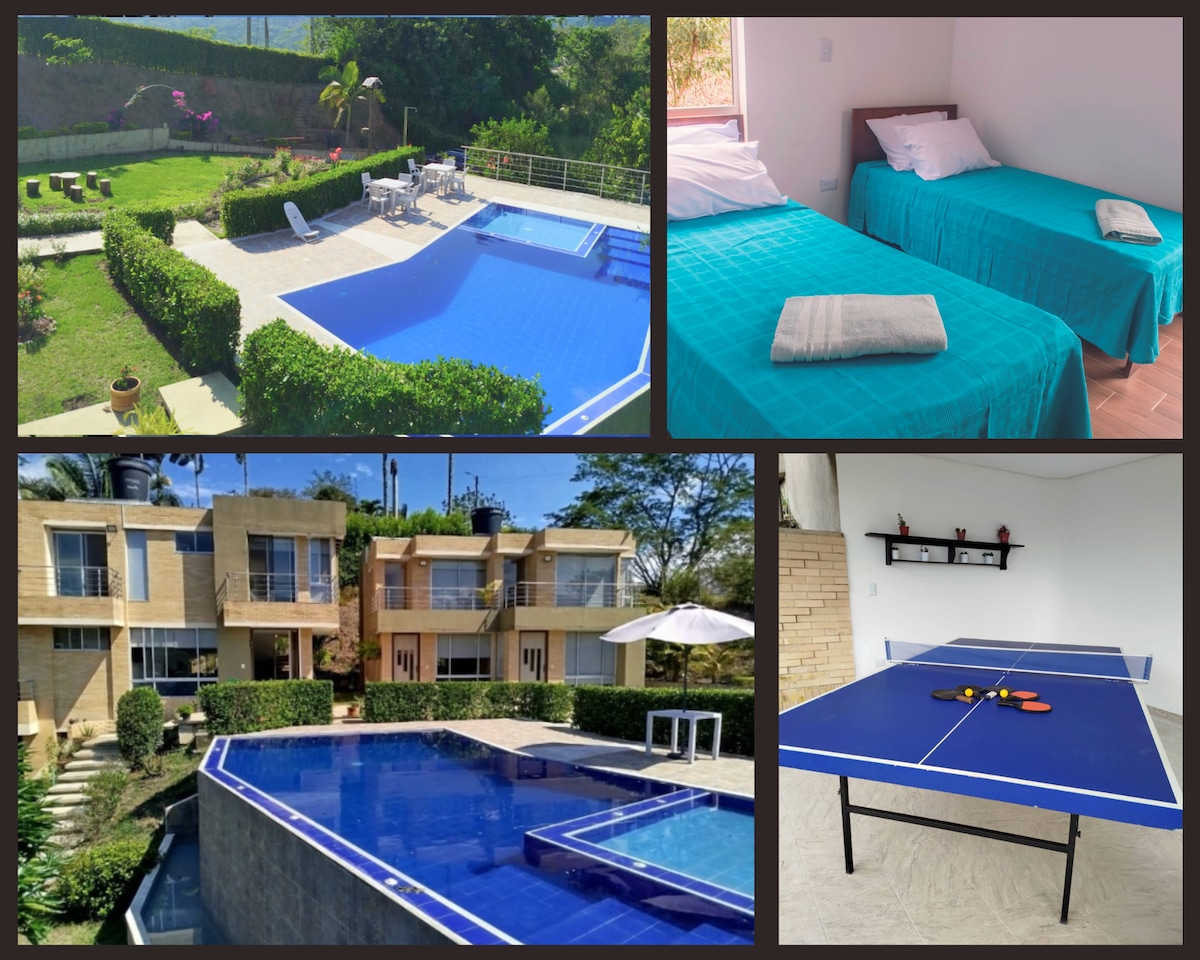Kondominiumda sevimli ev, ayrıca hamam otağı olan 5 süita. Teraslar, göyərtəsi olan hovuz, Cakuzi, BBQ, 66'Smart TV, Wifi, Yemək otağı, tam təchiz olunmuş Mətbəx ilə Qonaq Otağı. Yalnız 75 Kmts Boqota, 800 M hündürlükdə, Mükəmməl hava. Möhtəşəm FINCA en Condominio, 5 suit con baño, İnternet, cakuzi, BBQ, Piscina con deck . Excelente clima a solo 75 K de Bogotá y 800 M de altitud. El clima perfecto, vista espectacular. İdeal para descansar y disfrutar. Klub Payandenin yanında