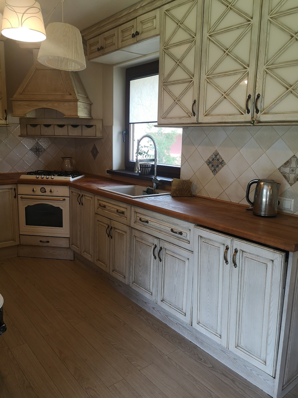 Vilnüsün köhnə şəhərində 3 yataq otağı 95 kv.m kottec. Birinci mərtəbədə mətbəxi və mətbəxi olan qonaq otağı var. Mətbəxin döşəməsi istilik sistemidir, soba, böyük soyuducu, qab yuyan maşın və elektrik şkafı var. 1-ci mərtəbədə hamam otağı (duş) olan ilk yataq otağı və balkonu olan açıq üslubda yataq otağı var. Sonuncu mərtəbədə ikinəfərlik çarpayı və divan-çarpayı olan sonuncu yataq otağı, bu mərtəbədə isə daha bir hamam otağı (hamam) və paltaryuyan maşın və dolabı olan qutu otağı var.