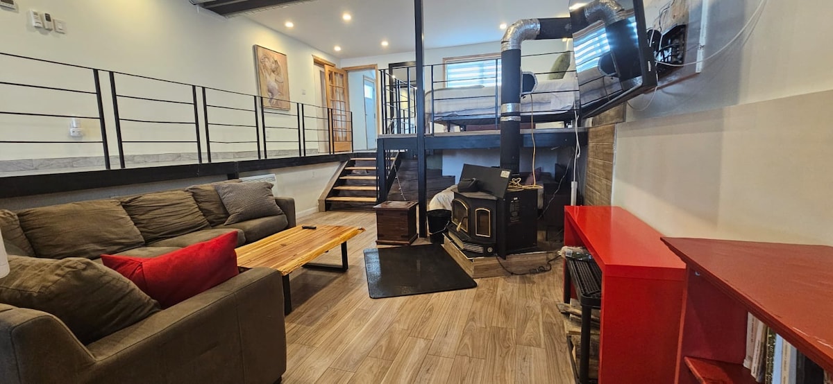 Acogedor estudio pequeño tipo subnivel, ideal para una o dos personas. Ubicado en una zona tranquila y bien conectada, a 3-5 minutos a pie del metro Cartier (línea naranja), con acceso directo al centro de Montreal en 20–25 min. El aeropuerto Montreal–Trudeau (YUL) está a 25–30 min en coche. Incluye Wi-Fi, cocina equipada, baño privado, lavadora/secadora y TV inteligente. Certificado CITQ No. 304968.