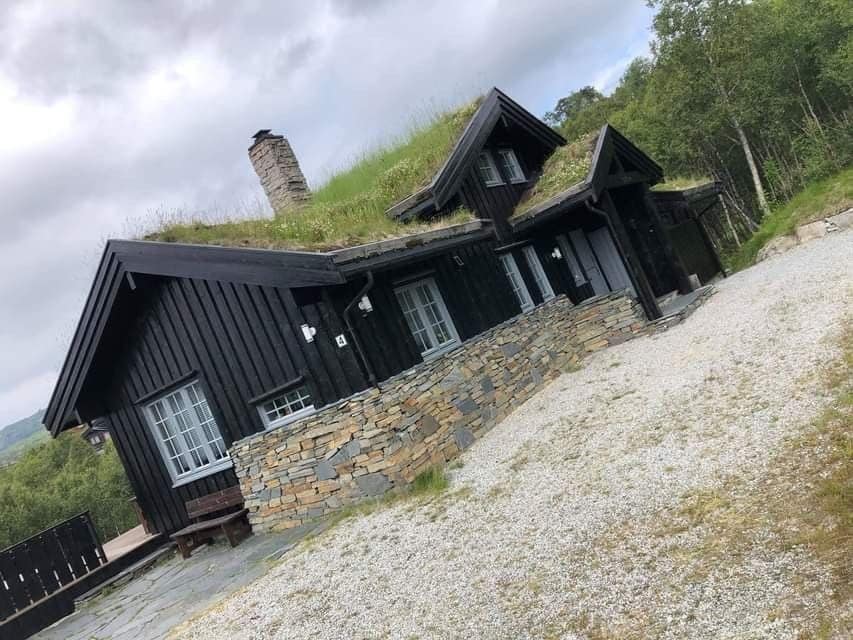 Hovden şəhərinin mərkəzində böyük kottec, Setesdal