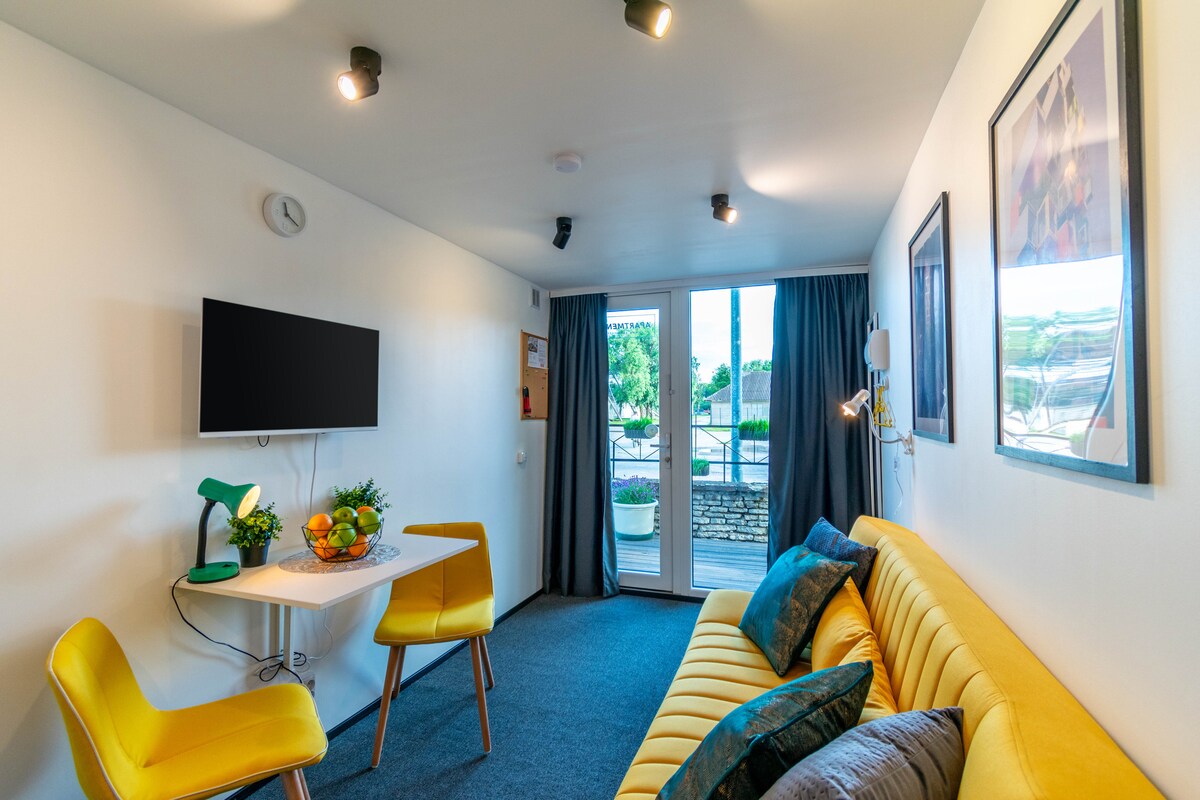 Bu unikal və rahat yerdə fasilə verə bilərsiniz. Qonaqlama yeri evin bir hissəsini təklif etməkdir. Bütün imkanlara malik mətbəxdə yemək bişirmək mümkündür. Açıq plan təcrübəsi bir nəfərlik çarpayı və bir nəfərlik çarpayısı olan bir yataq otağıdır. Qonaq otağında qatlanmış divan var. Öncədən bildiriş gələrsə, körpələr üçün səyahət kotu da qoyula bilər. Gigenik ləvazimatlar və dəsmallar təmin edilir. Yay dövründə 33 m2 terrasdan istifadə etmək mümkündür. Ayrıca ödənişlə yay evi, yeni sauna, barbekü və cakuzi icarəyə götürmək mümkündür.