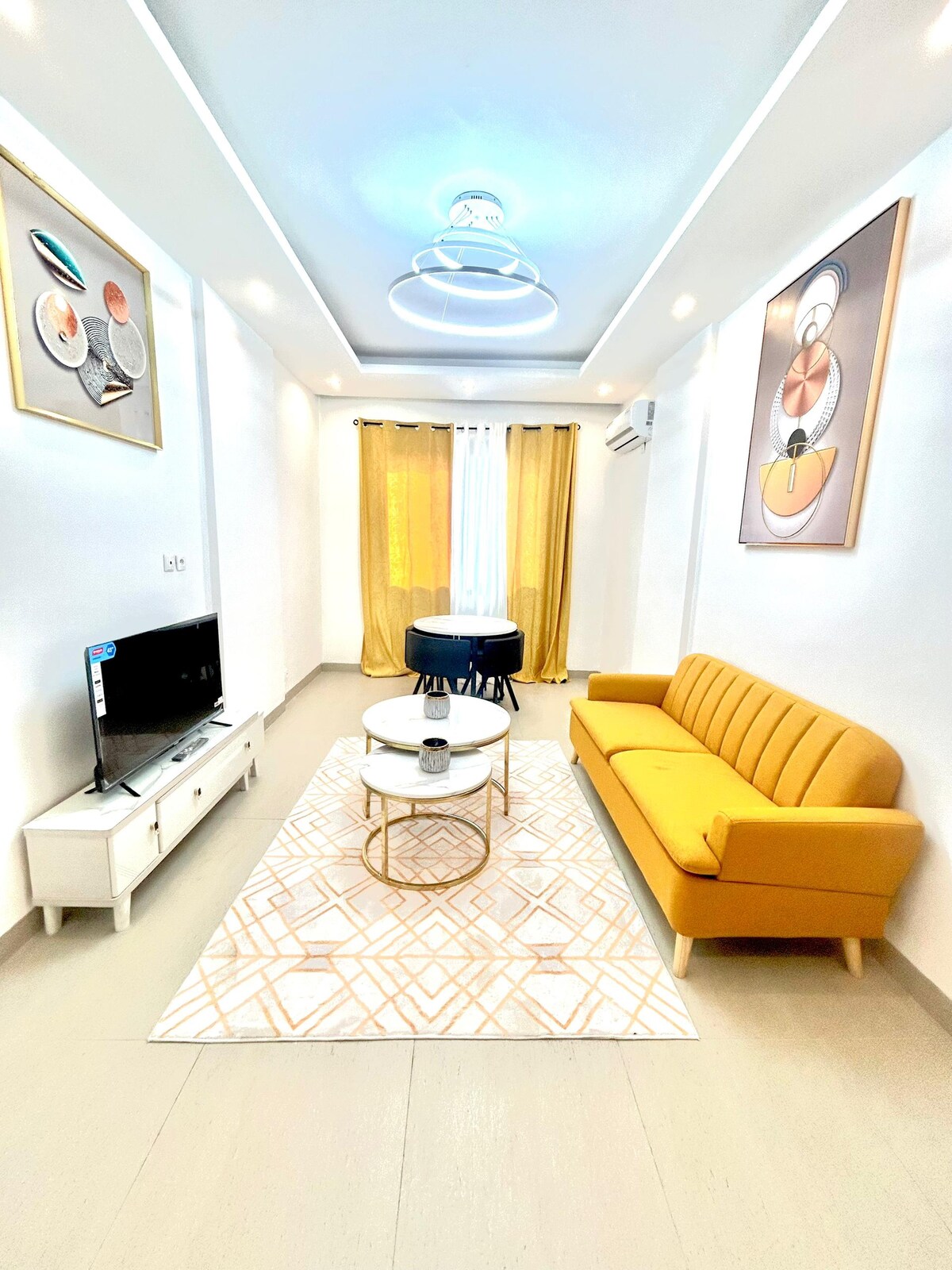 Təhlükəsiz yaşayış yerində lifti olan 4-cü mərtəbədəki bu möhtəşəm mənzillə bağlı narahatlığınızı unudun. Nəfəskəsici dekorasiyası qonaqlamanızı ümumi rahatlıqda qiymətləndirməyinizə səbəb olacaq. Mənzil tamamilə kondisionerlidir, iki böyük qonaq otağı, 4K Smart TV, Fiber Optik, Netflix, Kanal, günün 24 saatı təmin edilən mühafizə xidməti ilə təchiz olunub. Hava limanına köçürmələriniz, eyni zamanda səyahətləriniz üçün icarə mikroavtobusu təmin edilə bilər.