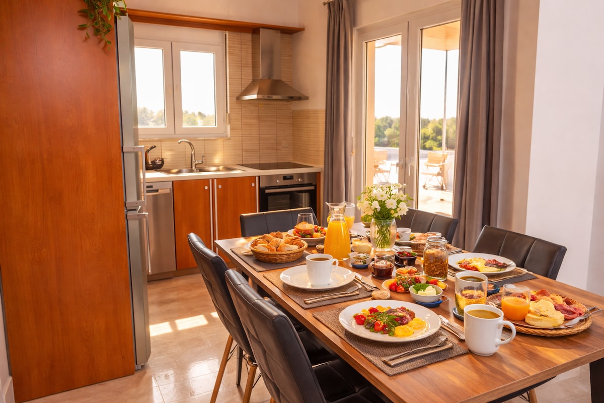 Villamız mükəmməl rahatlıq və dəbdəbənin qarışığı ilə seçilir. Hər biri ayrıca açıq hava sahəsi olan iki geniş yataq otağı ilə qonaqlar həm məxfilikdən, həm də istirahətdən zövq ala bilər. Villa tam təchiz olunmuş mətbəx, rahat yaşayış sahəsi, yüksək sürətli Wi-Fi və günəş şezlonqları olan hovuza malikdir. Əlavə xüsusiyyətlərə sakit bağ sahələri və açıq havada rahat istirahət zonaları daxildir. Kənd mərkəzindən qısa məsafədə yerləşən villamız yerli mətbəxə və yaxınlıqdakı görməli yerlərə asan giriş imkanı təklif edir.