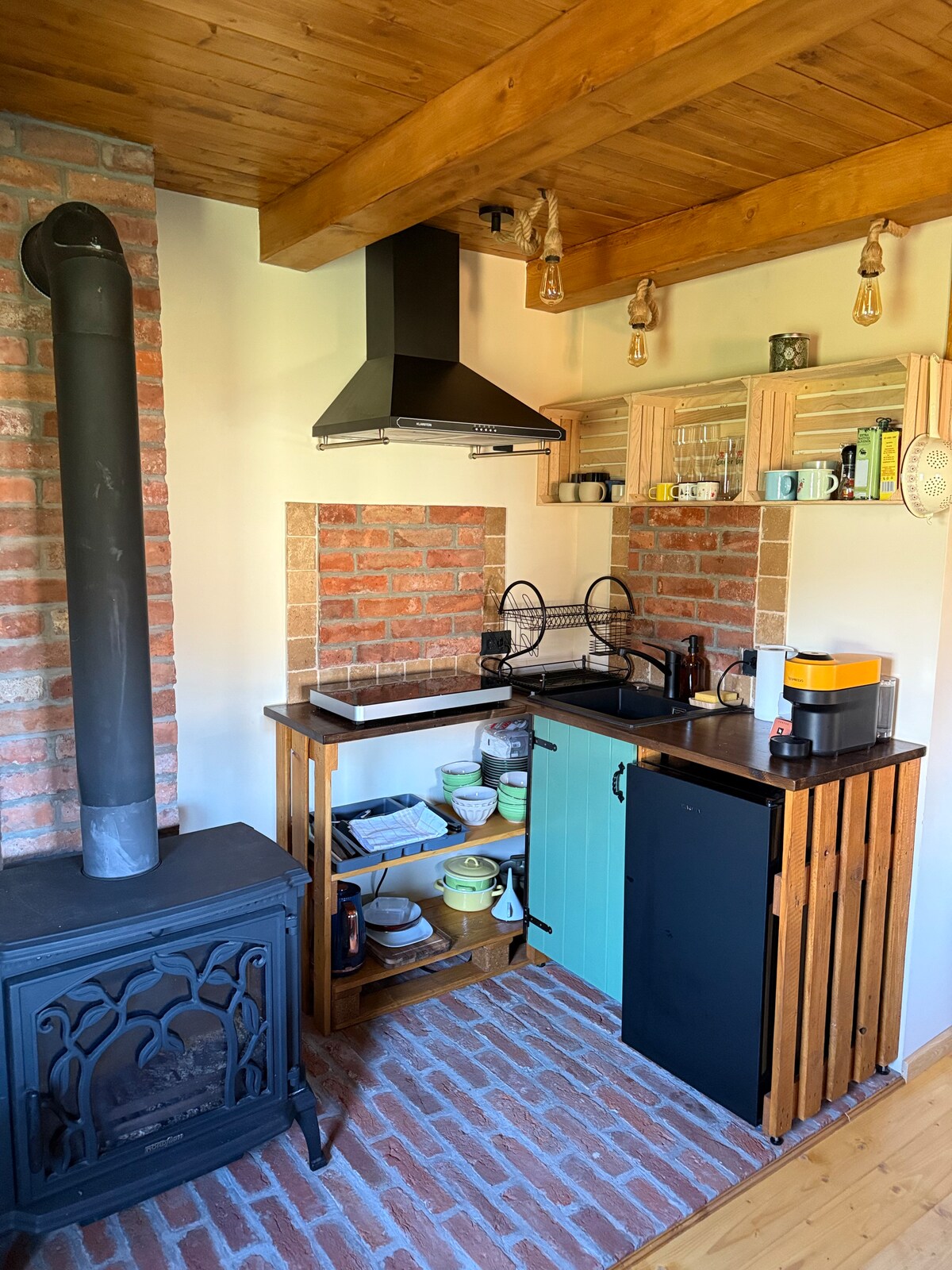 Cabană tradițională cu suflet, ascunsă într-un colț liniștit, această cabană te invită să te reconectezi cu lucrurile simple și frumoase. Lemnul vechi, ușile vopsite în verde blând, textilele tradiționale și obiectele lucrate manual creează o atmosferă caldă, intimă, în care fiecare detaliu spune o poveste. Interiorul este primitor și luminos, cu finisaje naturale și piese de mobilier alese cu grijă, care oferă confortul de care ai nevoie pentru un sejur relaxant.