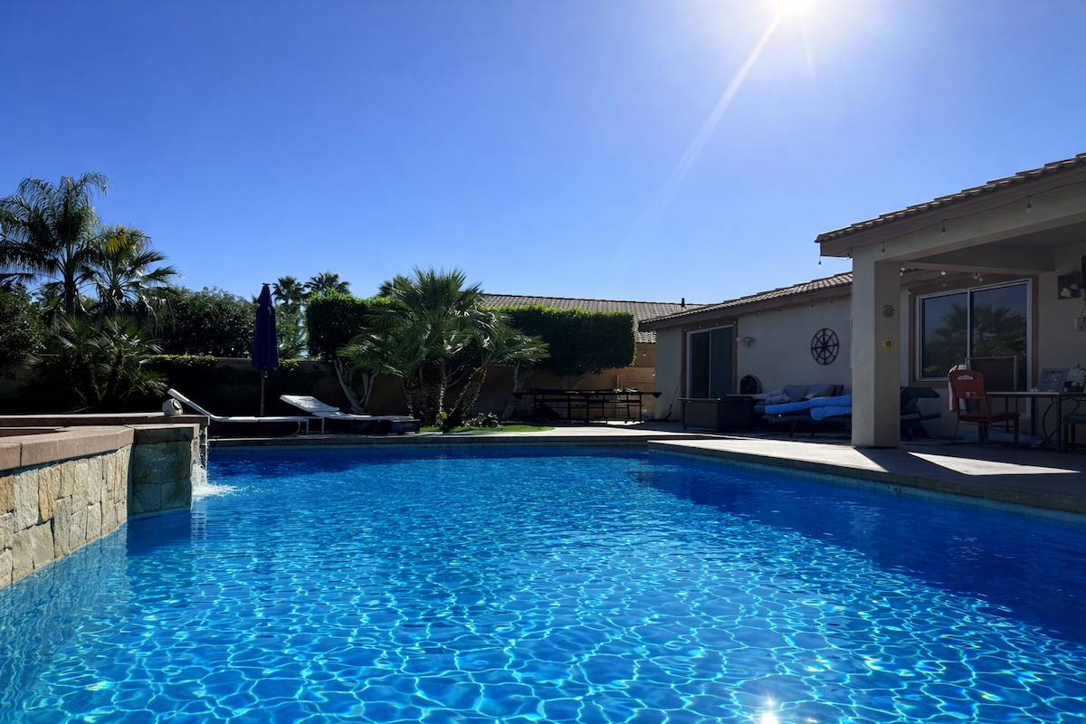 🏡 Spacious 4BR 3.5BA Indio retreat with private pool, lanai, game room & BBQ. Perfect for families & groups—just minutes to Coachella, golf, dining & casinos! Welcome to your desert retreat in Indio! This expansive 4-bedroom, 3.5-bath home offers comfort and resort-style amenities perfect for families weekend getaways. ✨ Highlights 🎮 Game Room - Endless indoor fun for all ages 🏊 Private Lanai & Pool - Lounge with serene water views 🍔 BBQ Area - Fire up the grill & dine al fresco