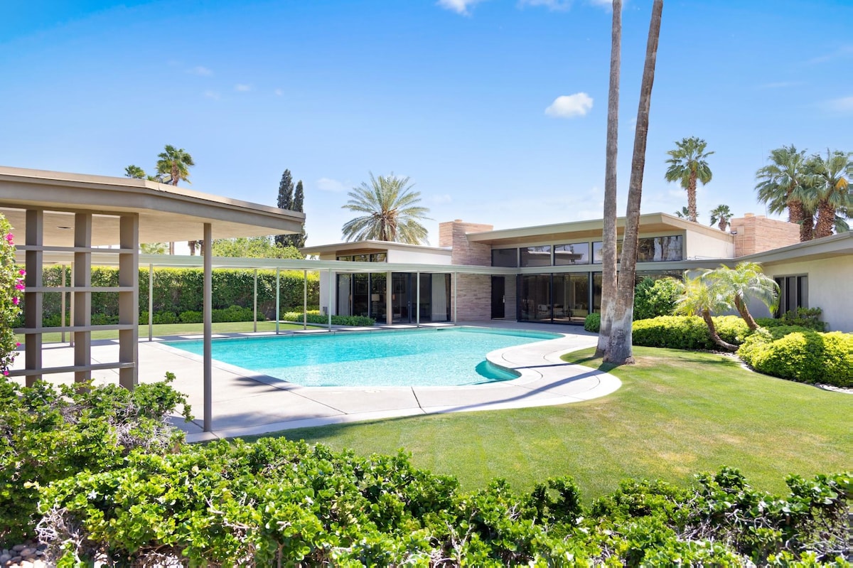 Treat yourself to a delightful getaway at Frank Sinatra Twin Palms Estate, offering 4 bedrooms and 6.5 bathrooms. This stylish hideaway boasts Designed by E; Centrally located in Palm Springs, this pet-friendly estate is within proximity to other famous Movie Colony residences once. Located in Palm Springs, CA, this appealing property offers inviting living areas, contemporary comforts, and convenient access to local points of interest.