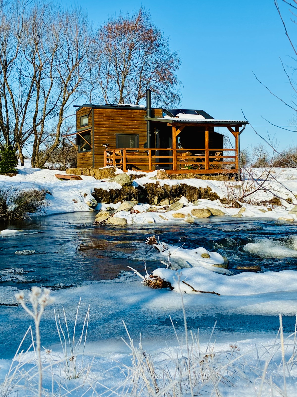 Şənlikdən qaçın və xoşbəxtliyi yenidən təmin edən həftəsonu istirahət məkanına qərq olun. Tətil eviniz, çay və meşə kənarında dəbdəbəli kabinə, skandinav üslubunu dağ ab-havası ilə asanlıqla qarışdırır. Kobud kəsilmiş ağacdan hazırlanmış, baca, cakuzi və Faqaras dağlarındakı ikinci ən yüksək zirvənin panoramik mənzərələri ilə zəngindir. Rahatlıq və təbiətin mükəmməl qaynaşması sizi gözləyir.
