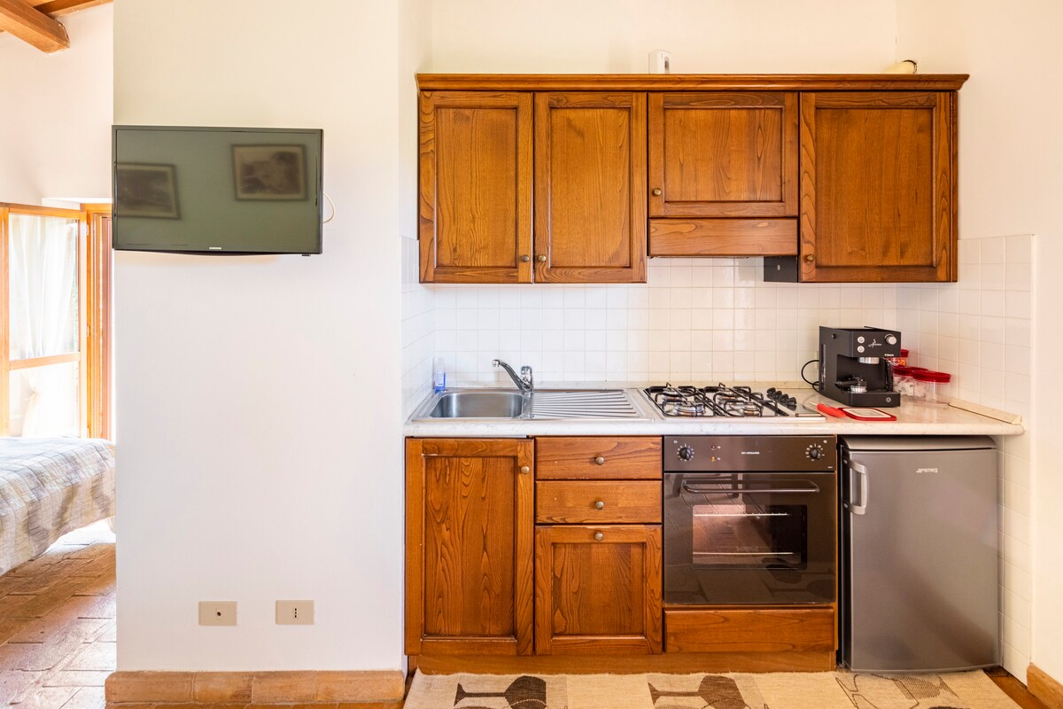Vignanello tarixi mərkəzinin mərkəzində, Cimini dağlarına panoramik mənzərəsi olan kiçik mənzil. "700" a aid tikilinin -1 mərtəbəsində yerləşən tağlı tavanlar böyük buxarı və daş mürəbbələri ilə birlikdə ətraf mühiti rahat və zərif edir. İki nəfərlik çarpayısı olan yataq otağı, təchiz olunmuş mətbəx və kiçik hamam otağından ibarətdir. Tuscia möcüzələrini kəşf etmək üçün bir məkan kimi idealdır.