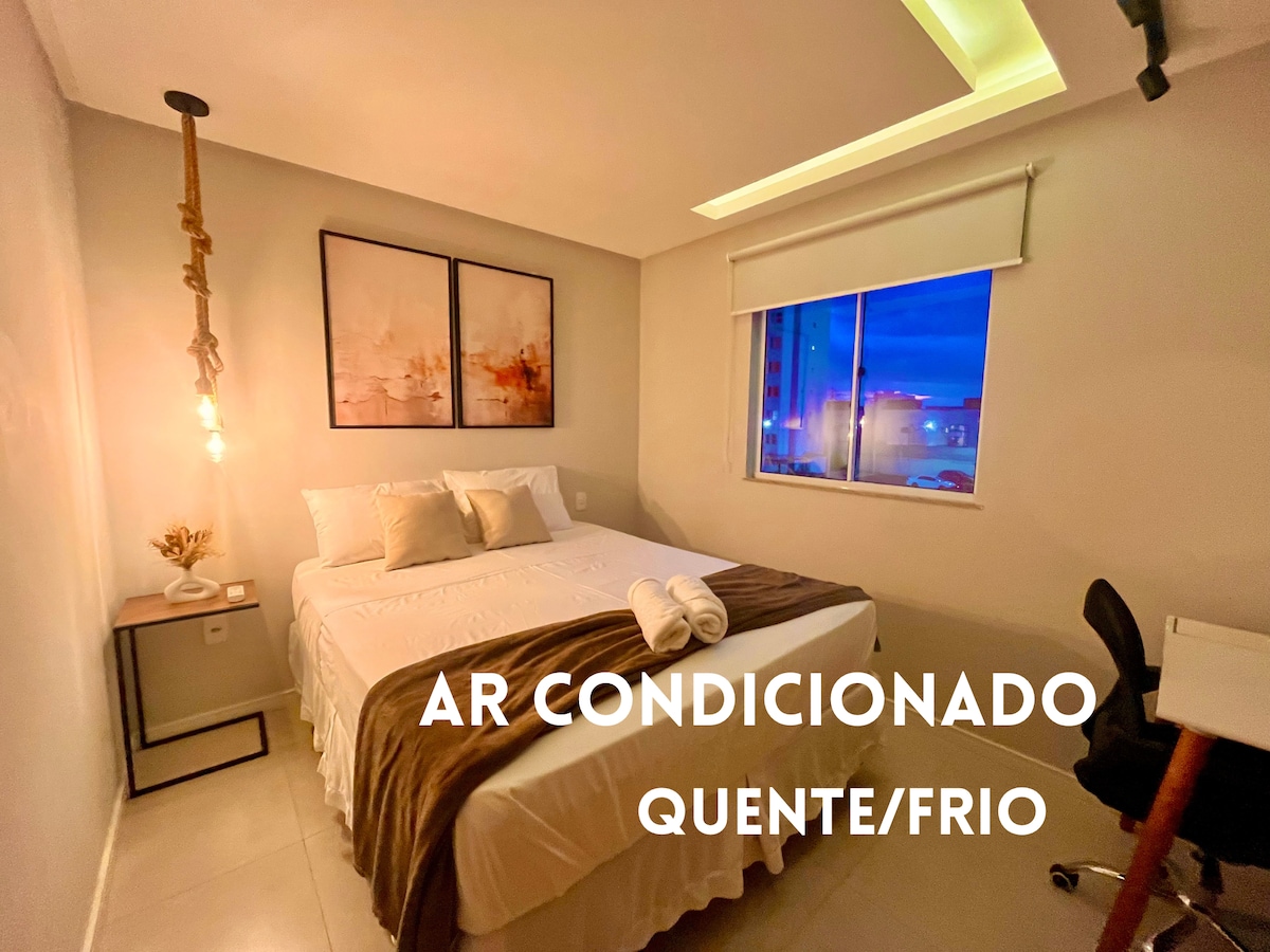 Apartamento moderno e aconchegante, ideal para quem viaja a trabalho ou busca uma estadia prolongada. Localizado no 2º andar de um condomínio seguro, com elevador, piscina, academia, vaga de estacionamento e Wi-Fi rápido, o espaço oferece o equilíbrio perfeito entre conforto e produtividade. 🚗 Localização estratégica • 5 min do Shopping Conquista Sul • 10 min do centro / Av. Olívia Flores • 15-20 min do Aeroporto Glauber Rocha