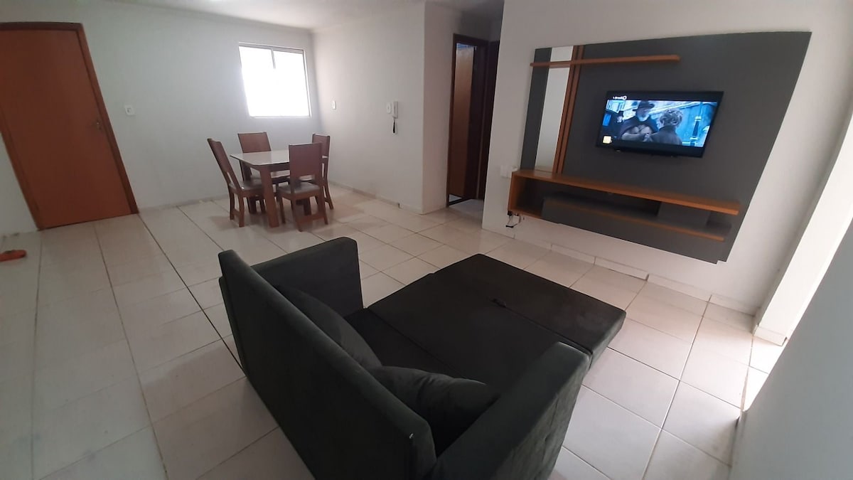 🌟Aproveite dias incríveis neste apartamento 3/4 de alto padrão, sendo 1 suíte, para até 5 pessoas. 🛌 Ambientes amplos e confortáveis, com cama queen, cama de casal e cama de solteiro. 🍳Cozinha moderna equipada com cooktop, forno elétrico , microondas e geladeira. 📍 Sala aconchegante, condomínio seguro e localização privilegiada, perto de comércios e restaurantes, shopping, faculdades, farmácias. 💎 Perfeito para famílias, casais e grupos que buscam conforto e praticidade.